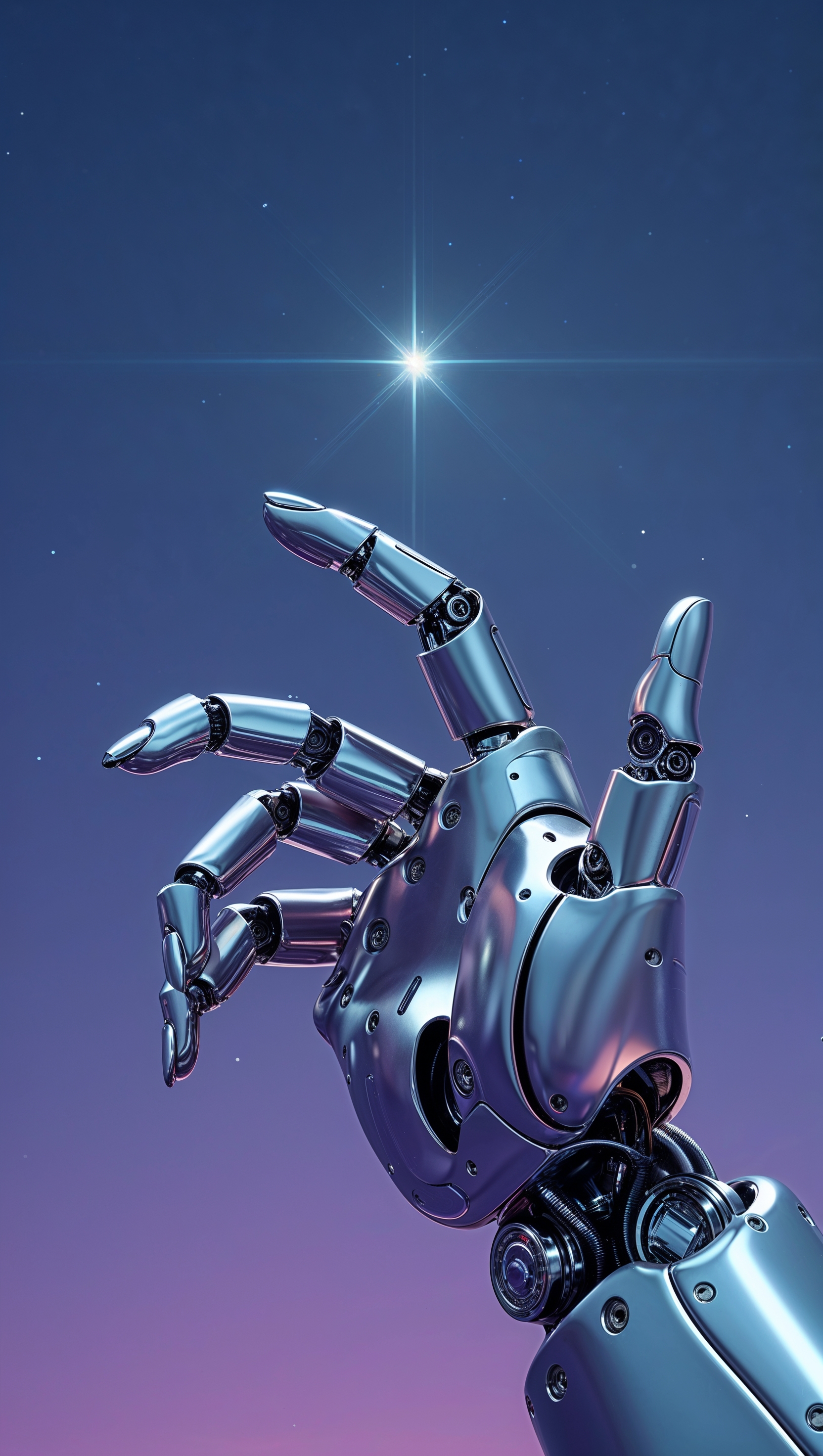 1664x2944 Robot hand pointing to a distant star, metaphor for the future, 4K iPhone image