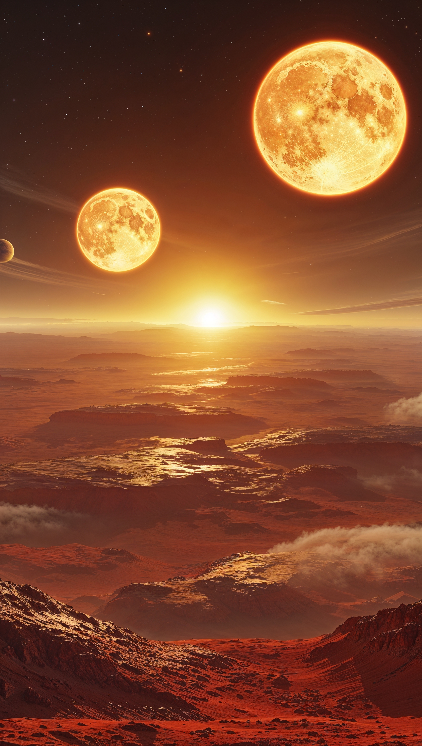 1664x2944 Planet with twin suns on the horizon, inspired by sci-fi films, high-resolution