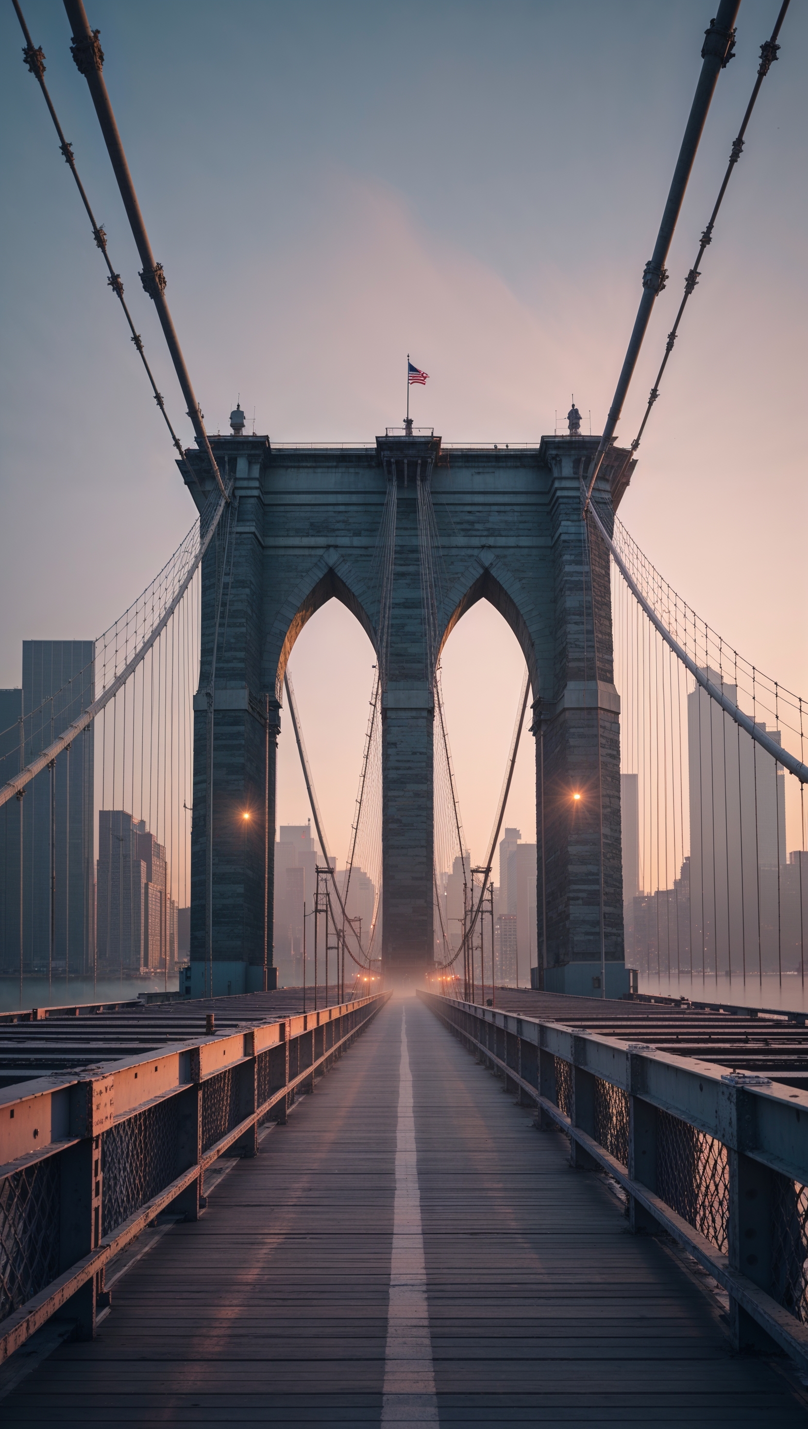 1664x2944 Brooklyn Bridge at dawn with soft lighting, minimalist style