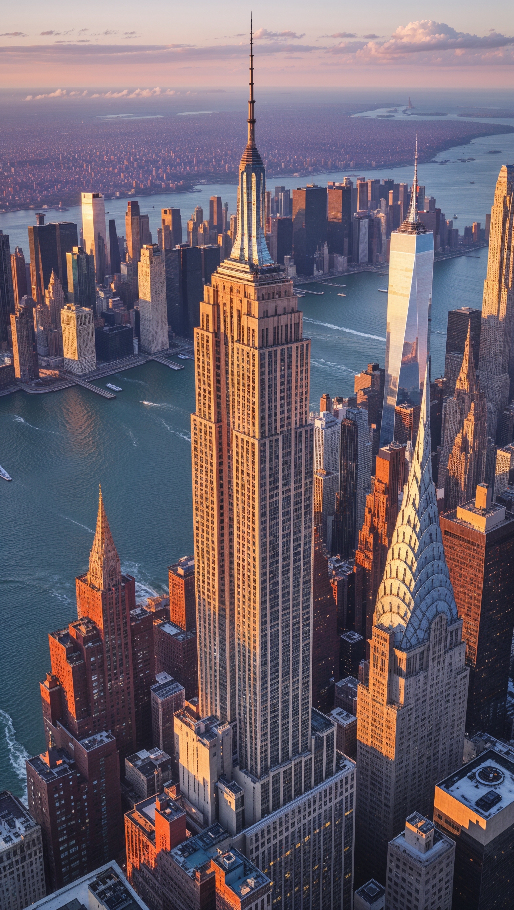 1664x2944 Aerial view of Manhattan during golden hour, high resolution