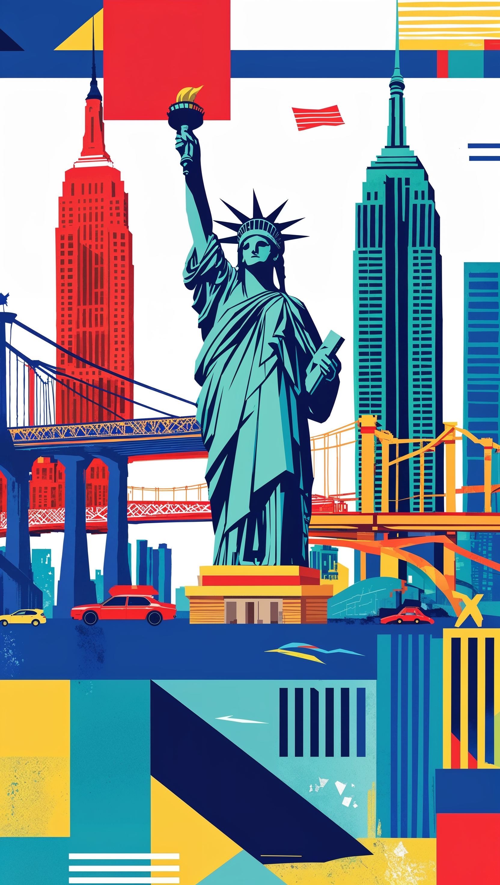 1664x2944 Modern art interpretation of New York for trendy wallpaper
