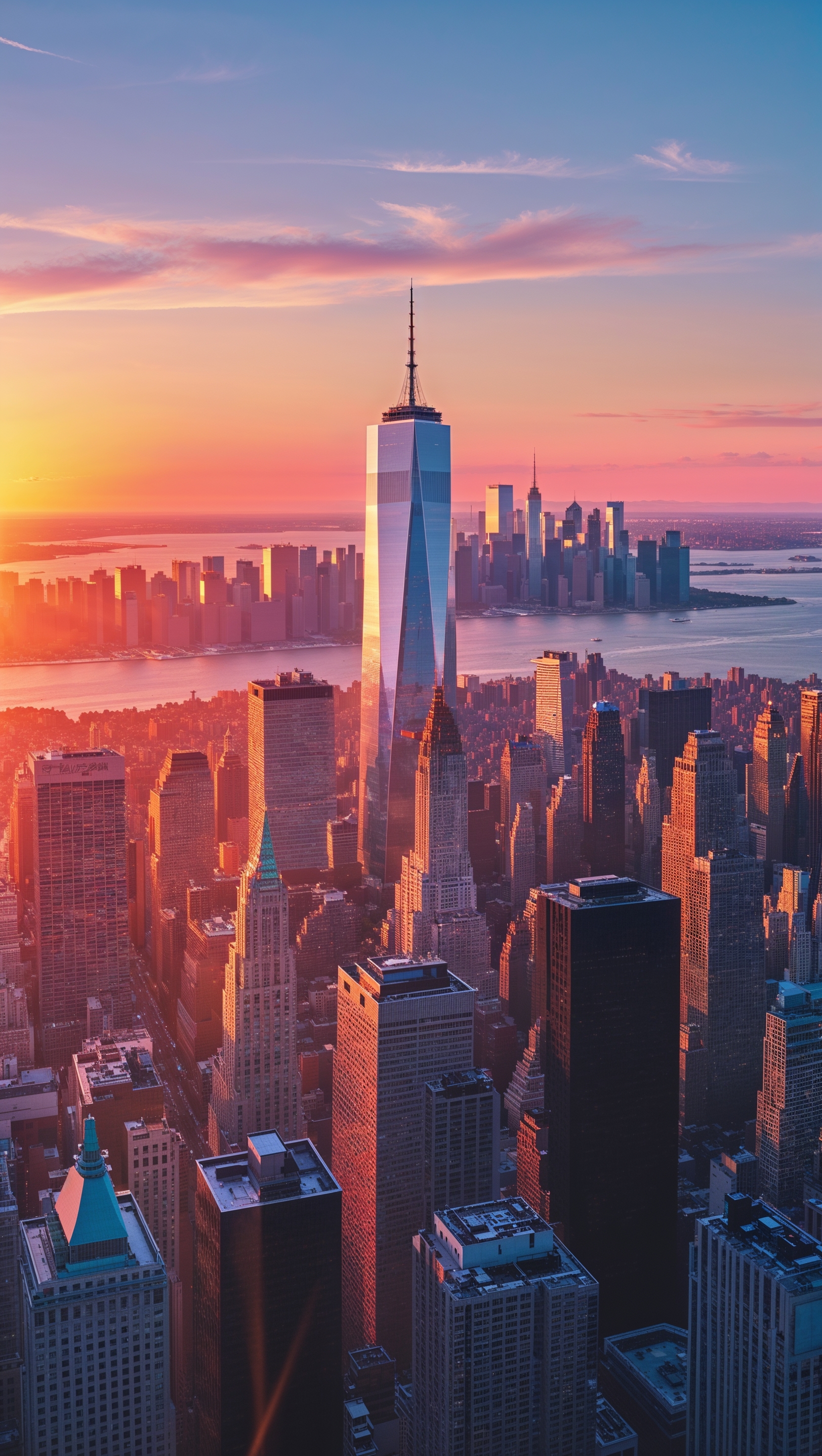 1664x2944 A stunning sunset view over New York City skyline, perfect for an iPhone wallpaper
