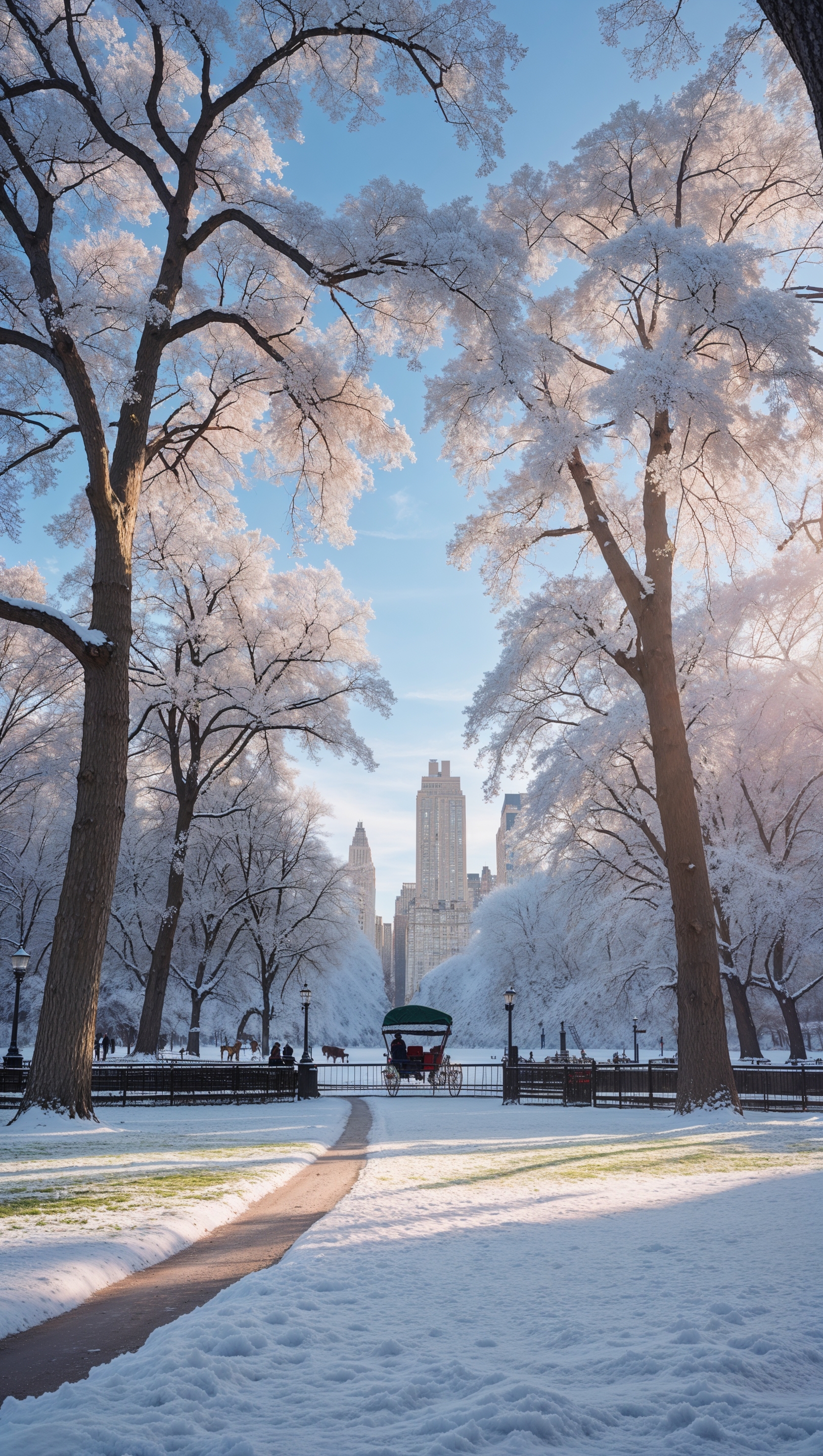 1664x2944 Snow-covered Central Park in winter, peaceful and bright