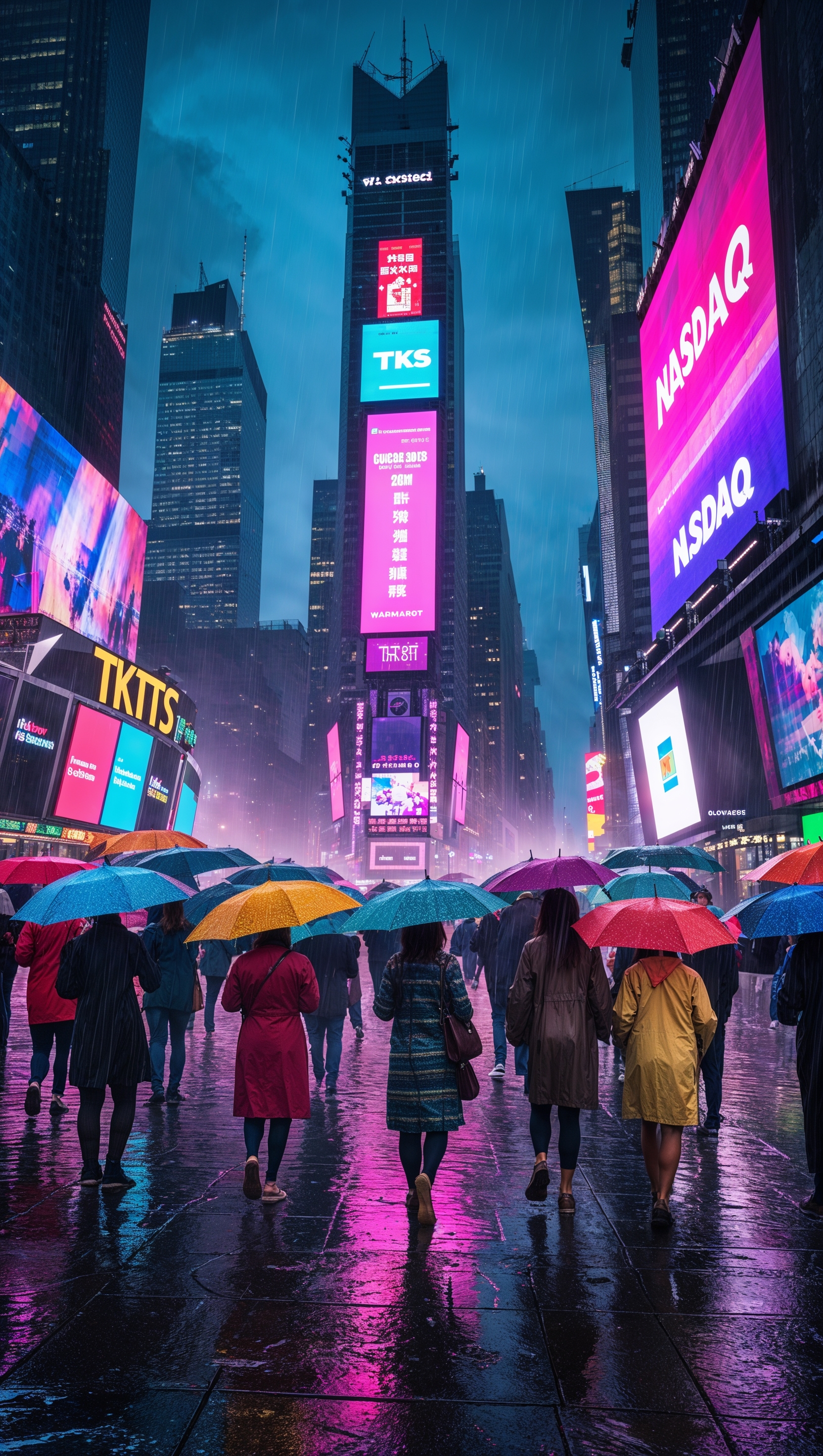 1664x2944 Rainy night in Times Square with neon reflections on wet streets
