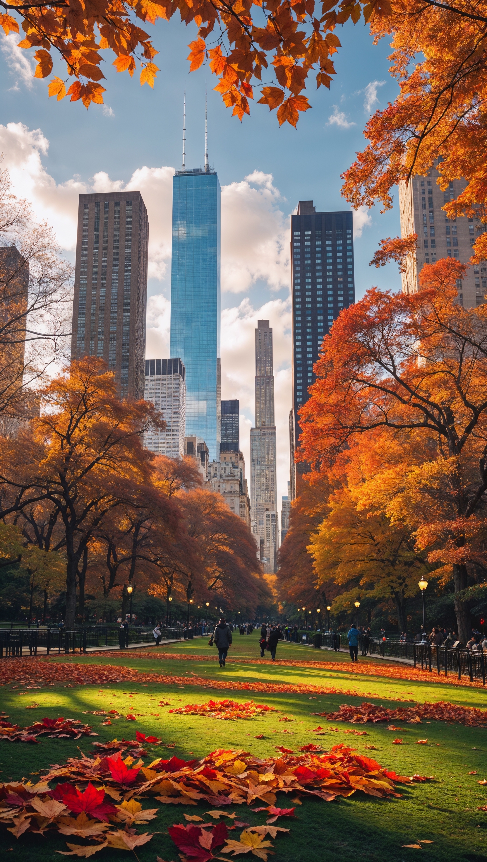 1664x2944 Autumn leaves in Central Park with skyscrapers in the background