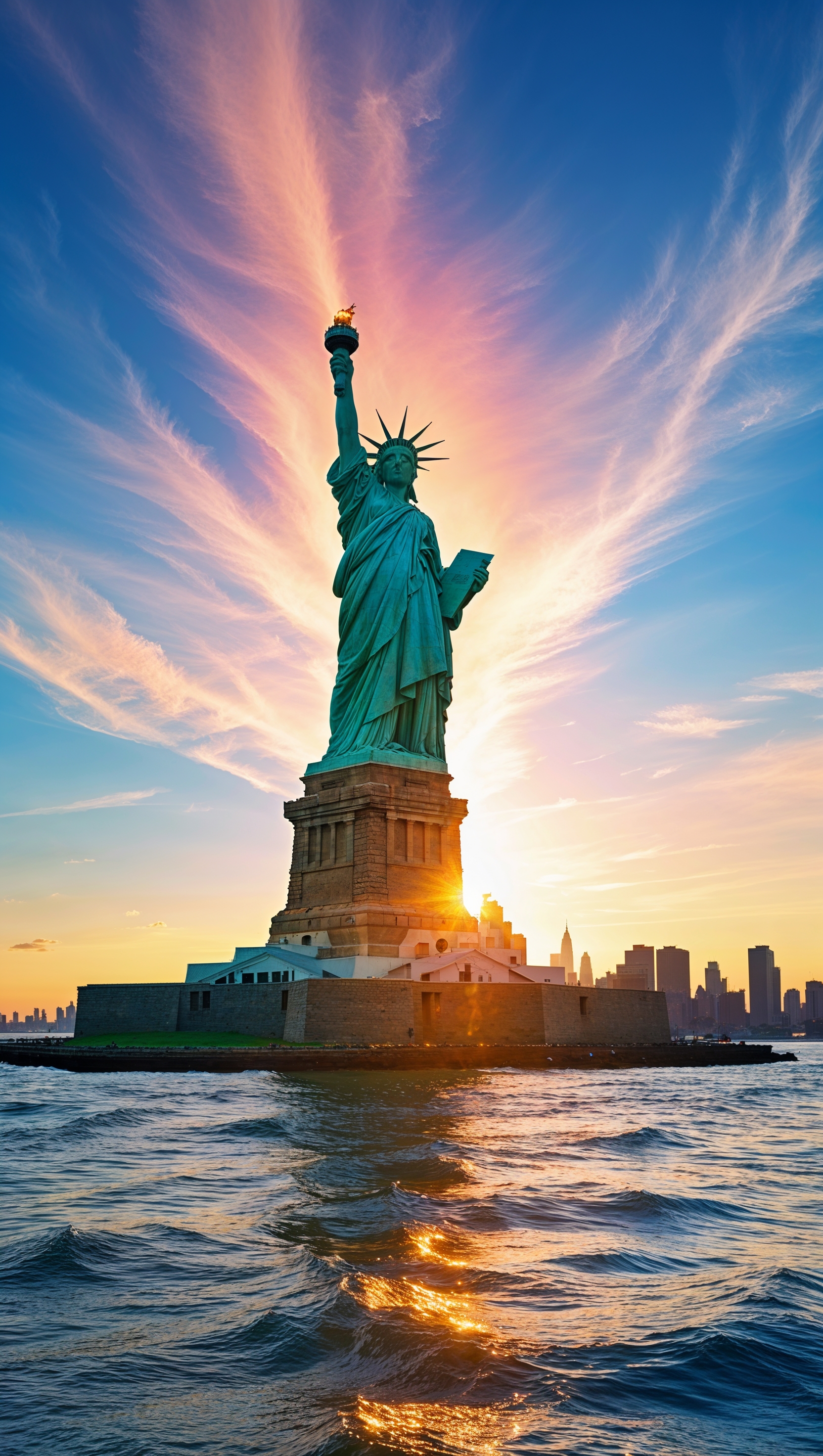 1664x2944 Sunrise over Statue of Liberty, peaceful and colorful