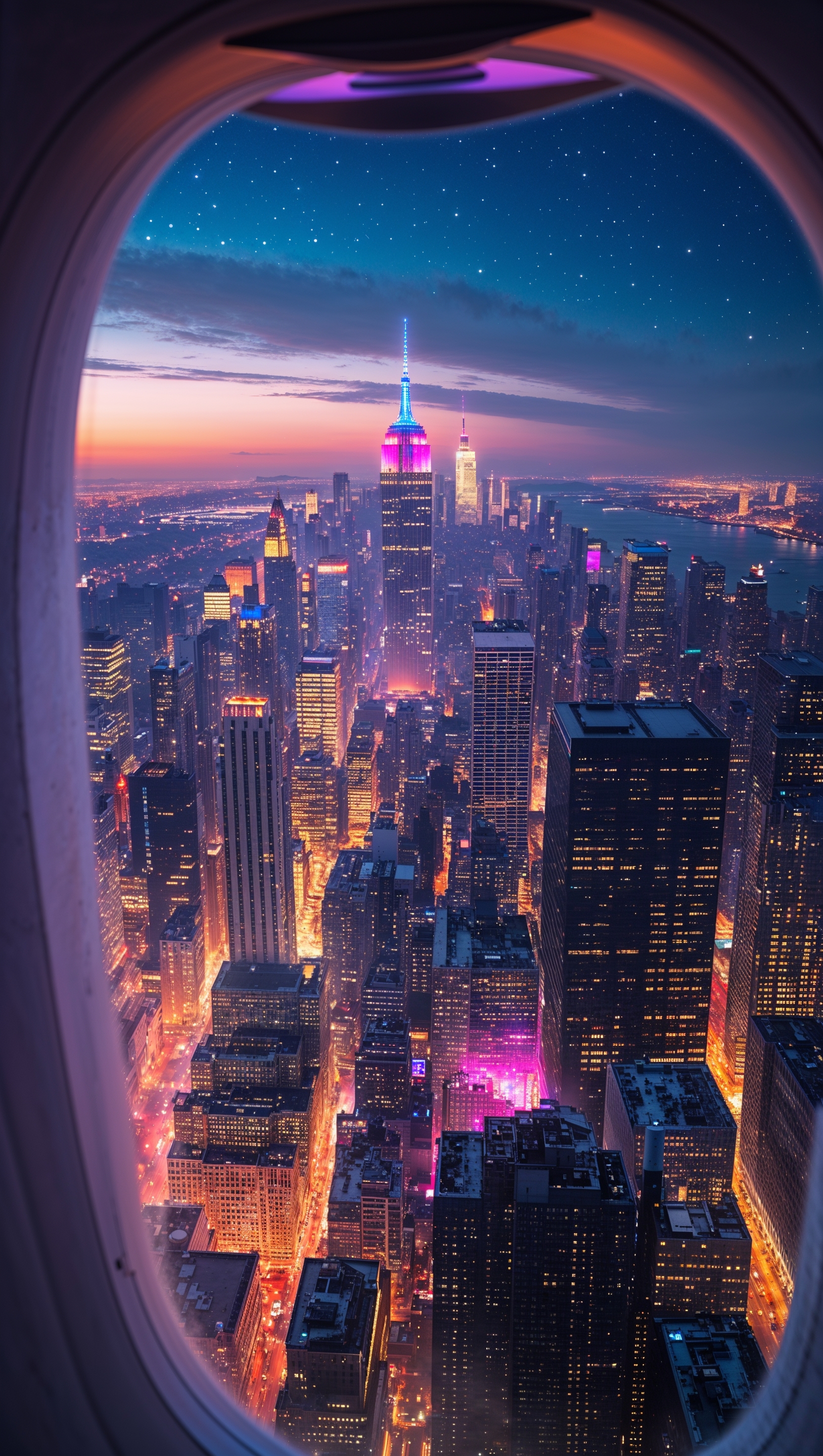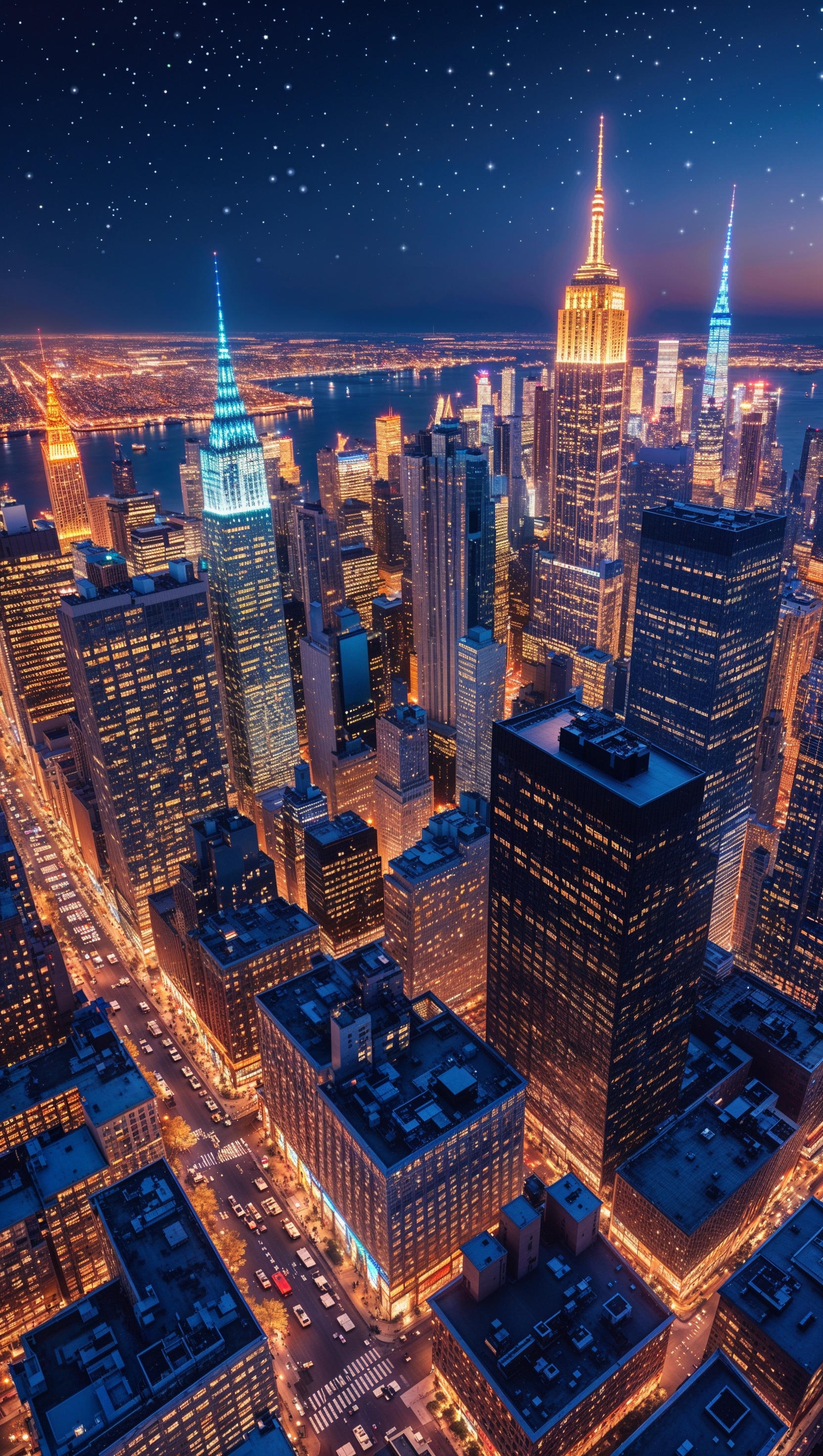 1664x2944 New York skyline with stars and moon, dreamy night vibe