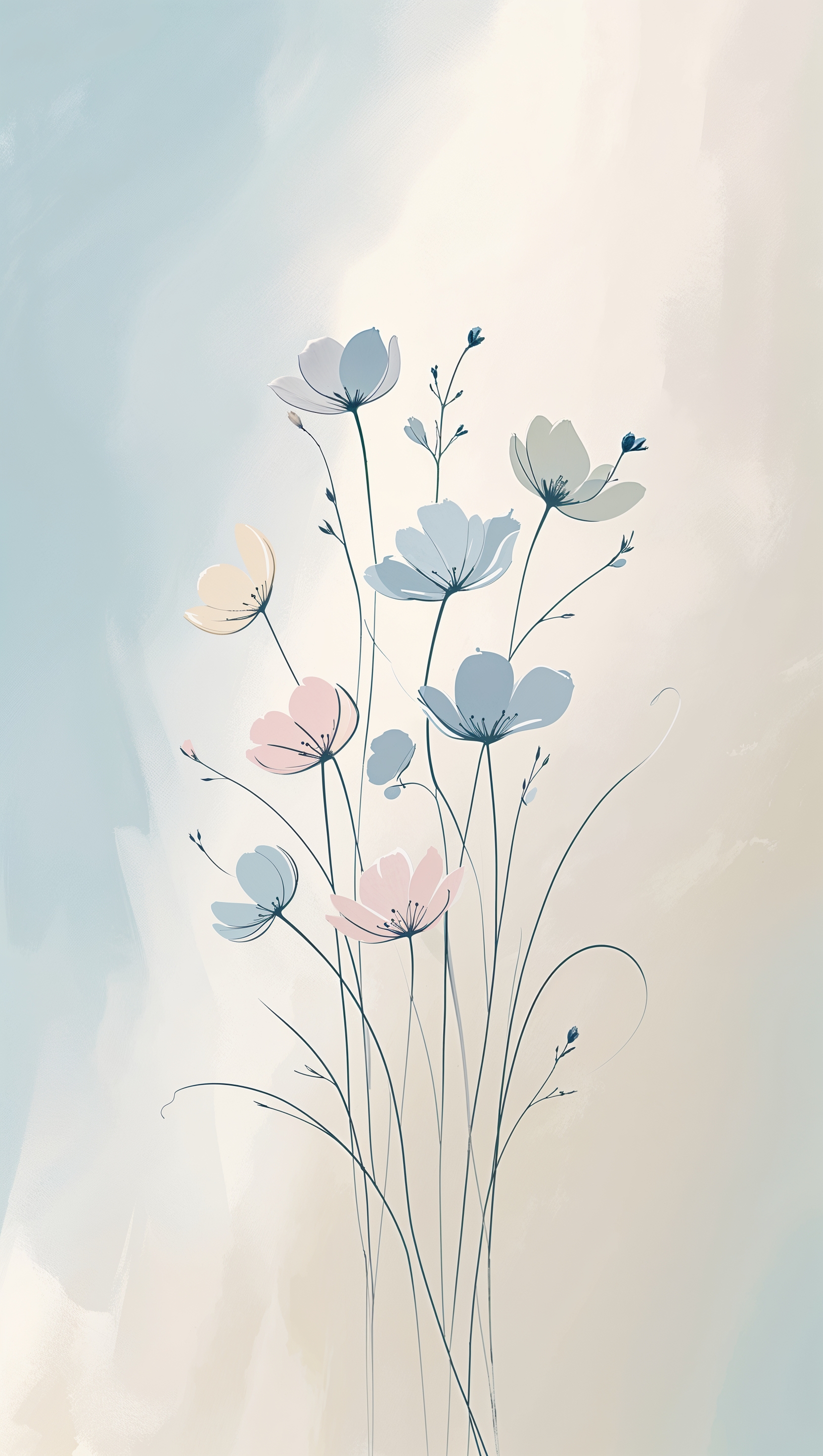 1664x2944 Minimalist wildflowers on a plain background for iPhone wallpaper