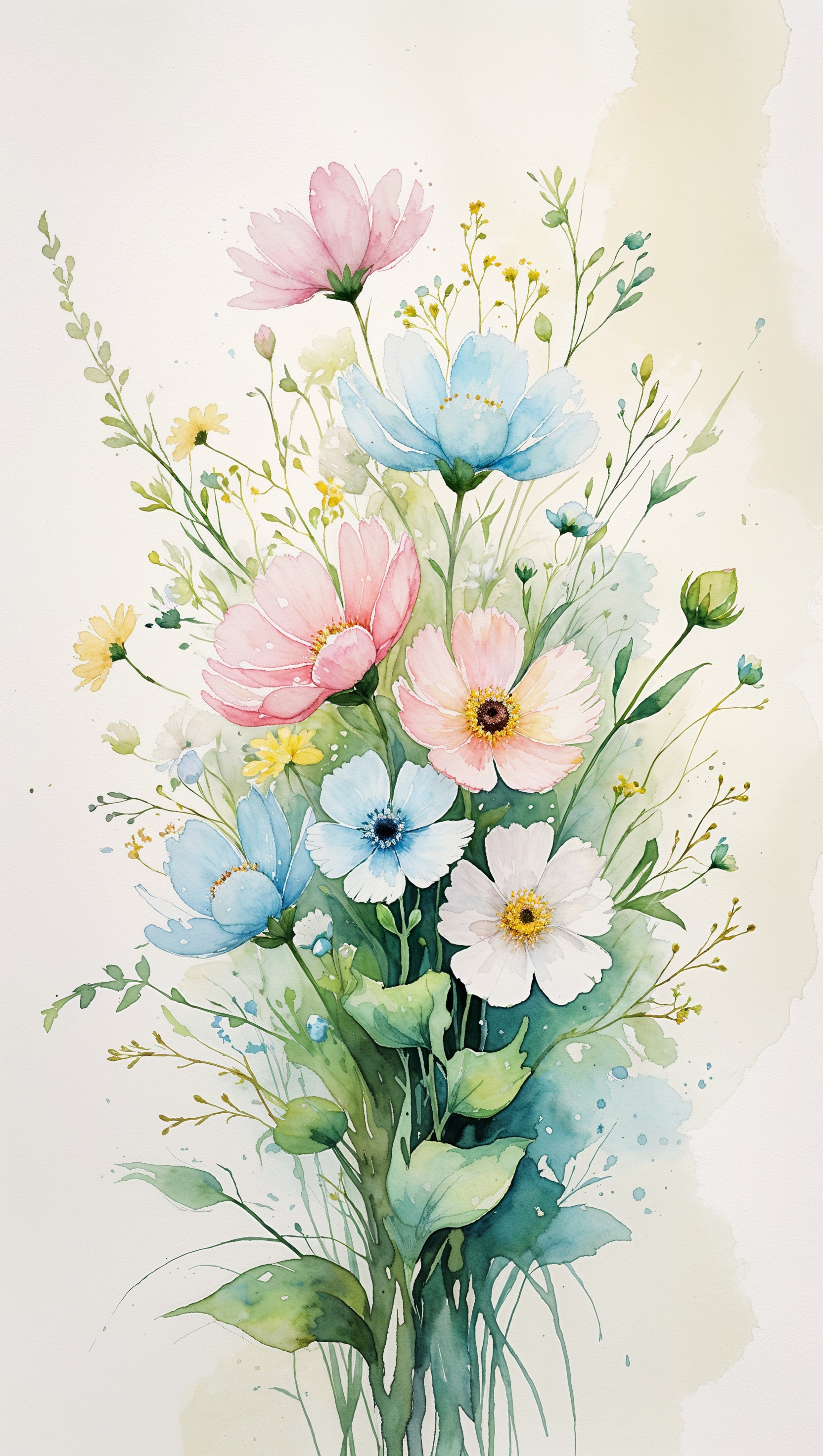 1664x2944 Watercolor wildflowers iPhone wallpaper