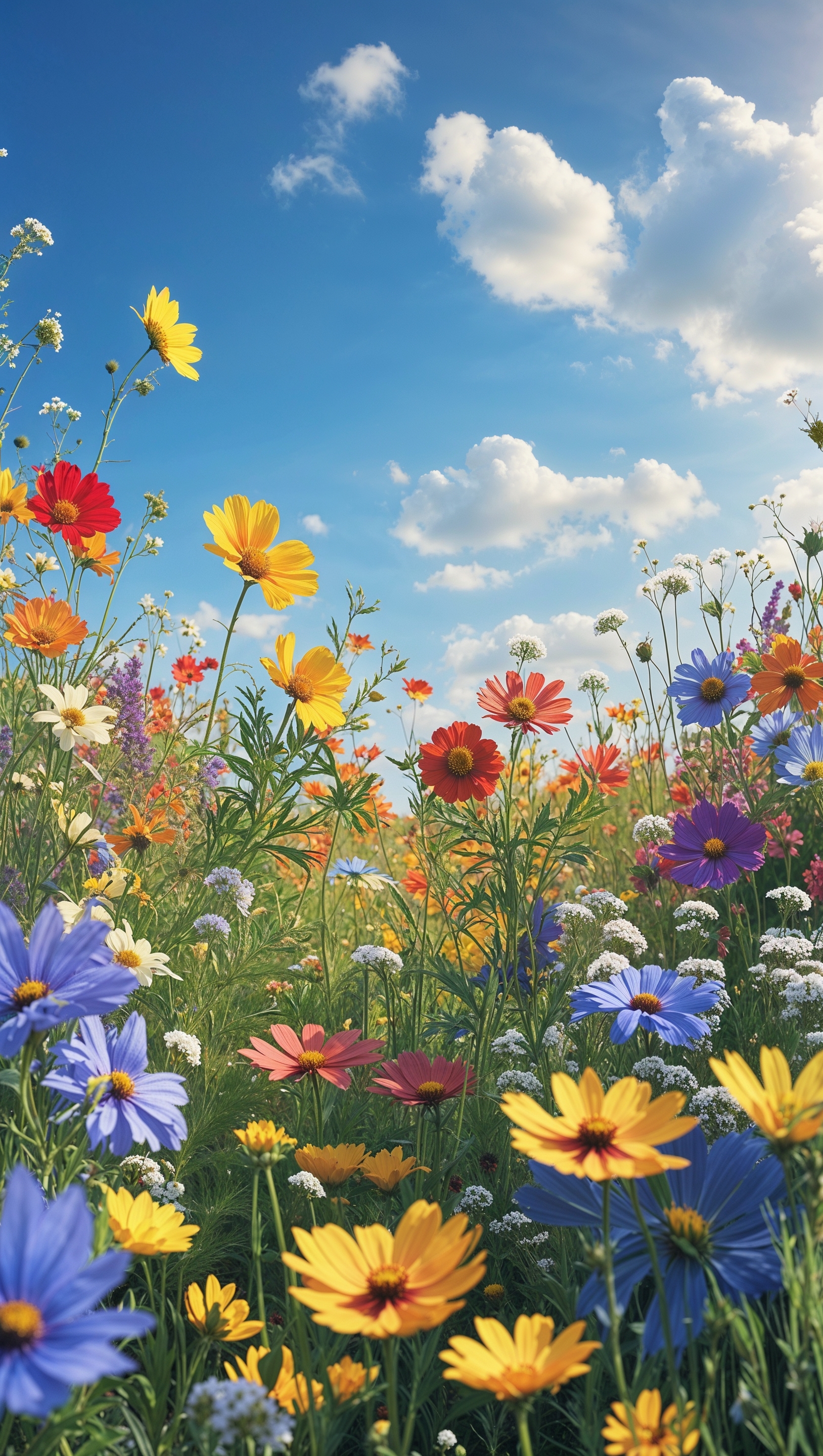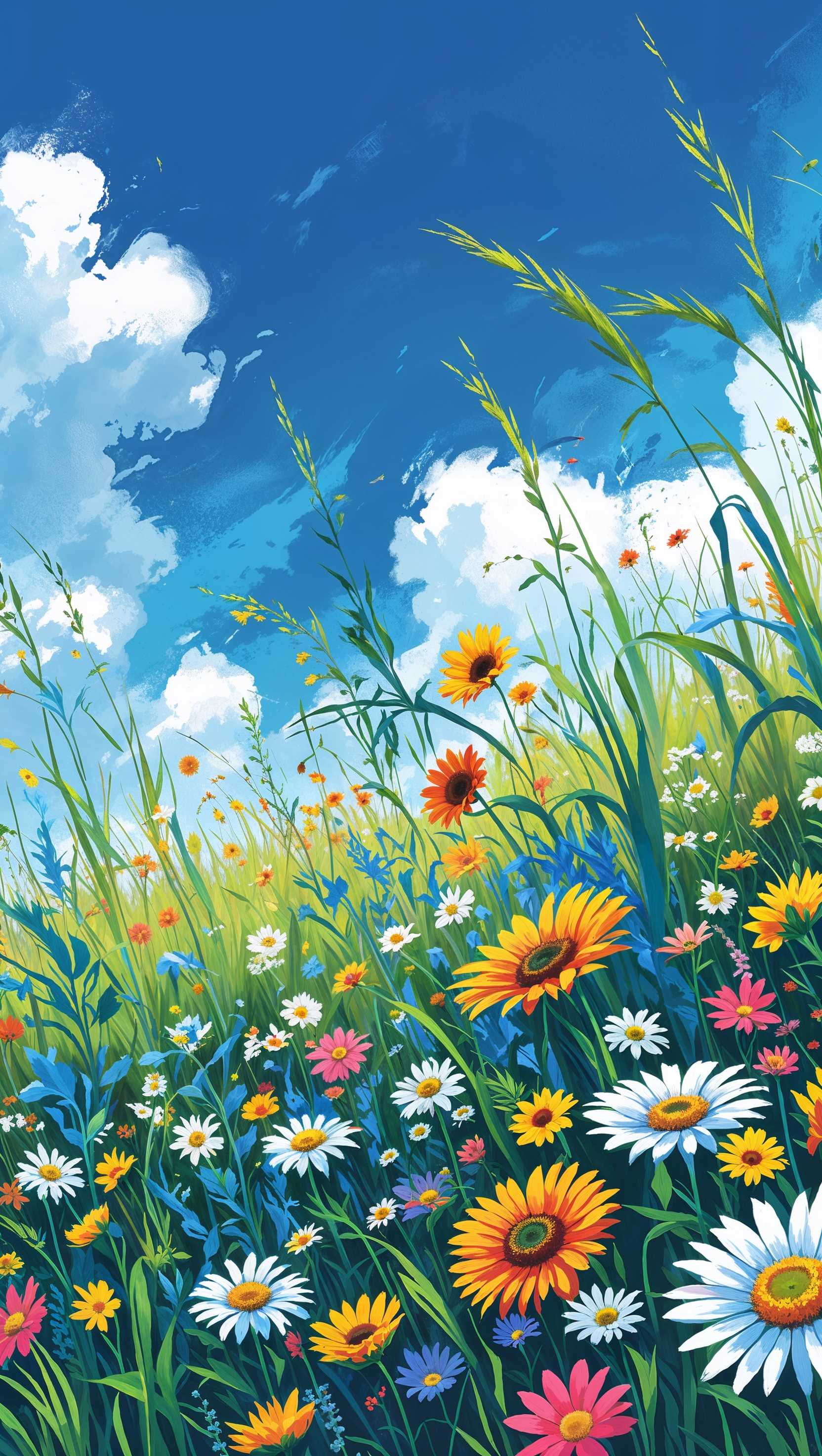 1664x2944 iPhone wallpaper of wildflowers in a sunny meadow