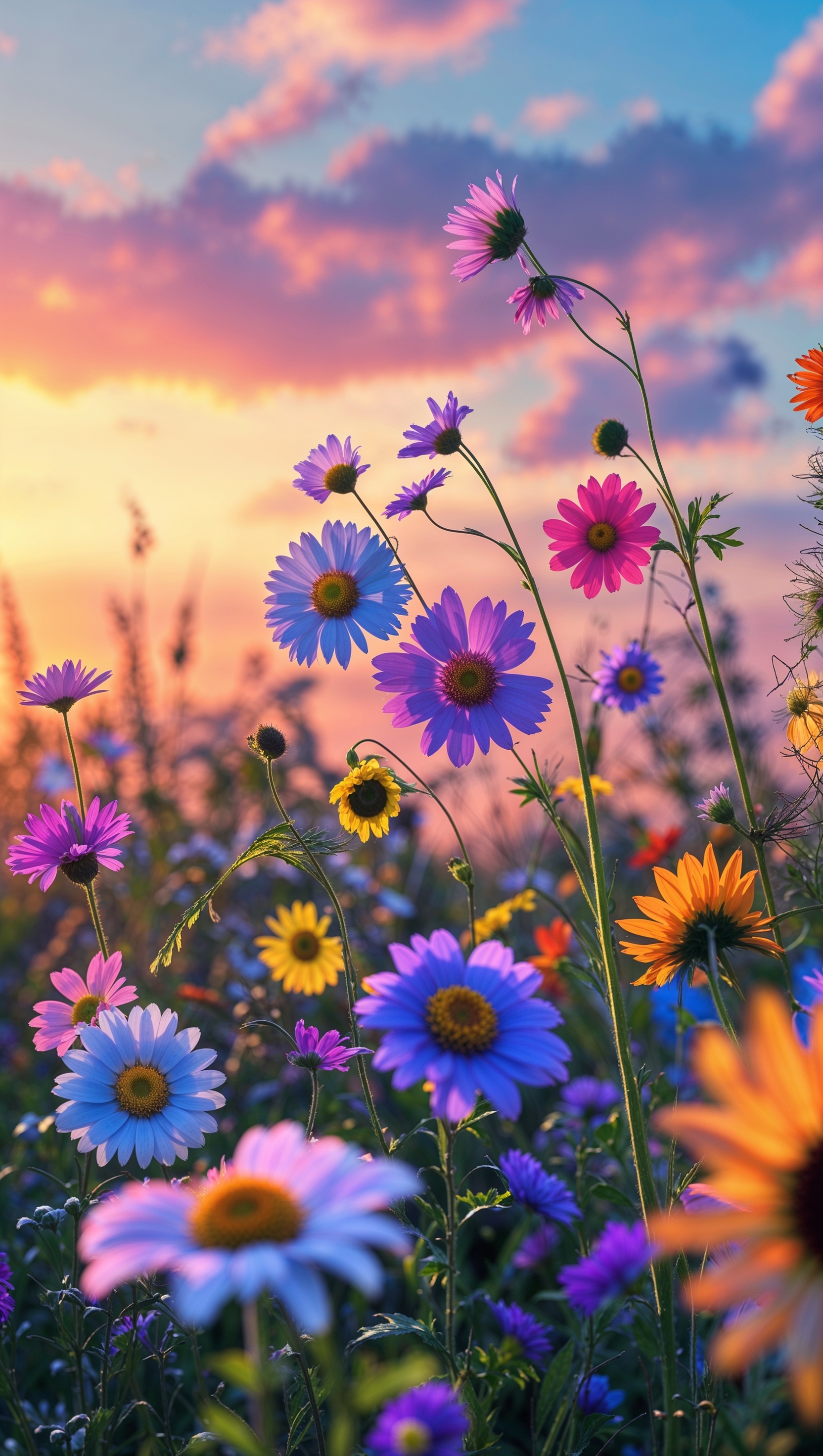 1664x2944 Colorful wildflowers at sunset, iPhone wallpaper