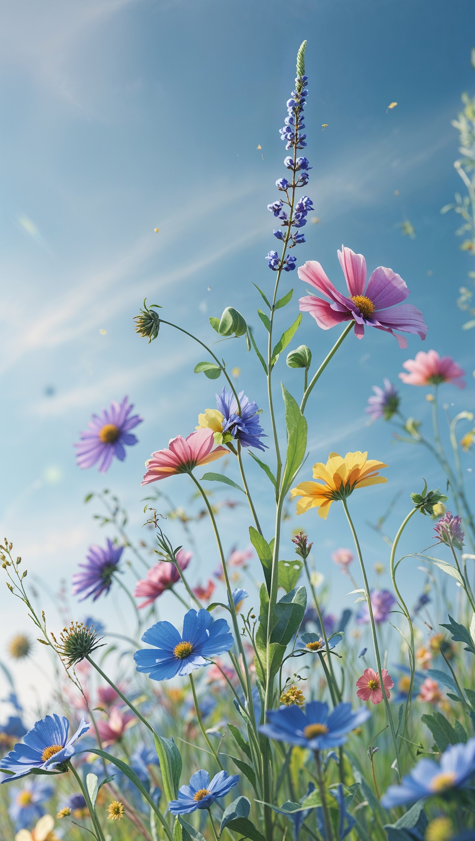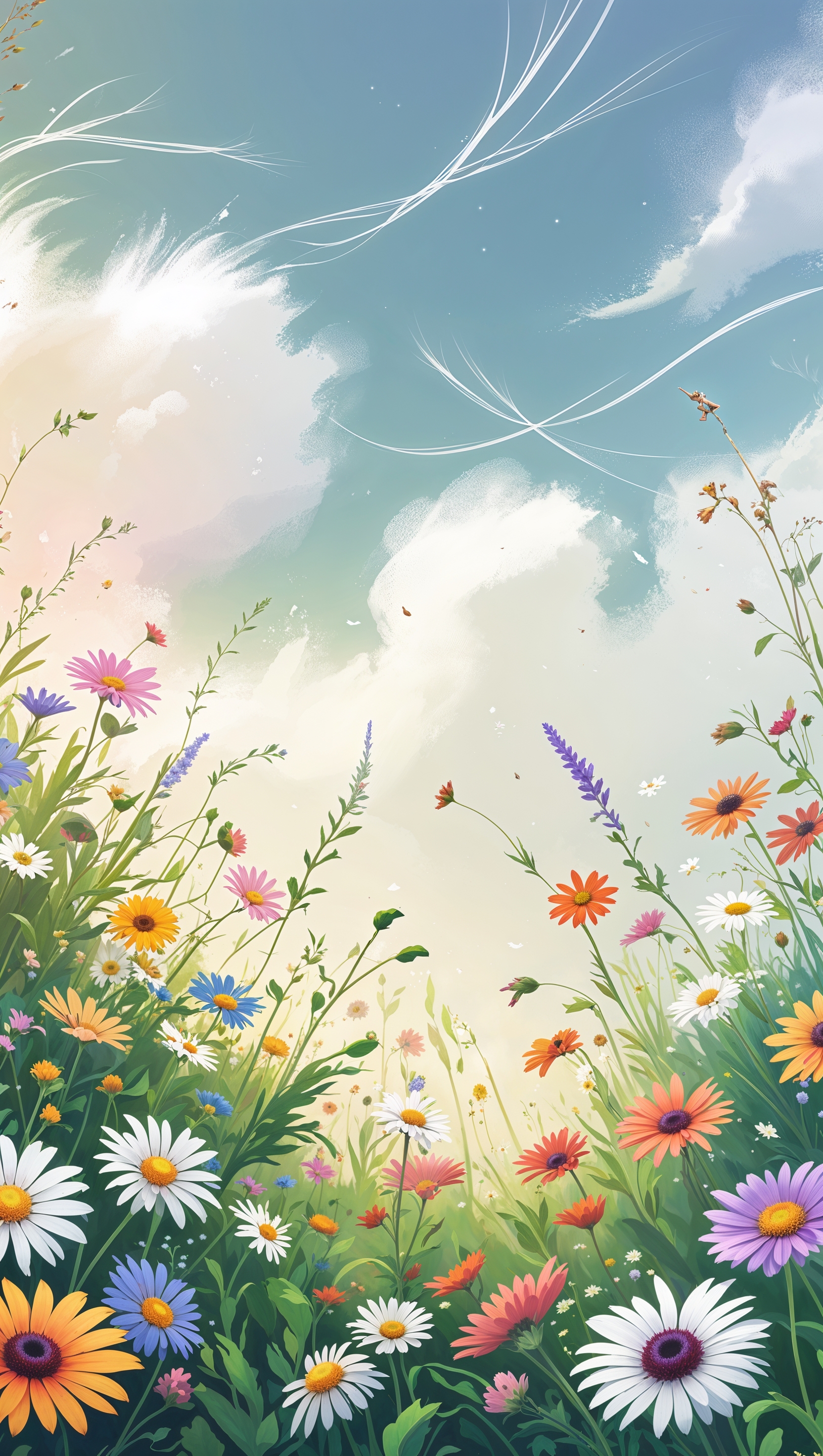 1664x2944 Wildflowers and soft clouds, iPhone wallpaper