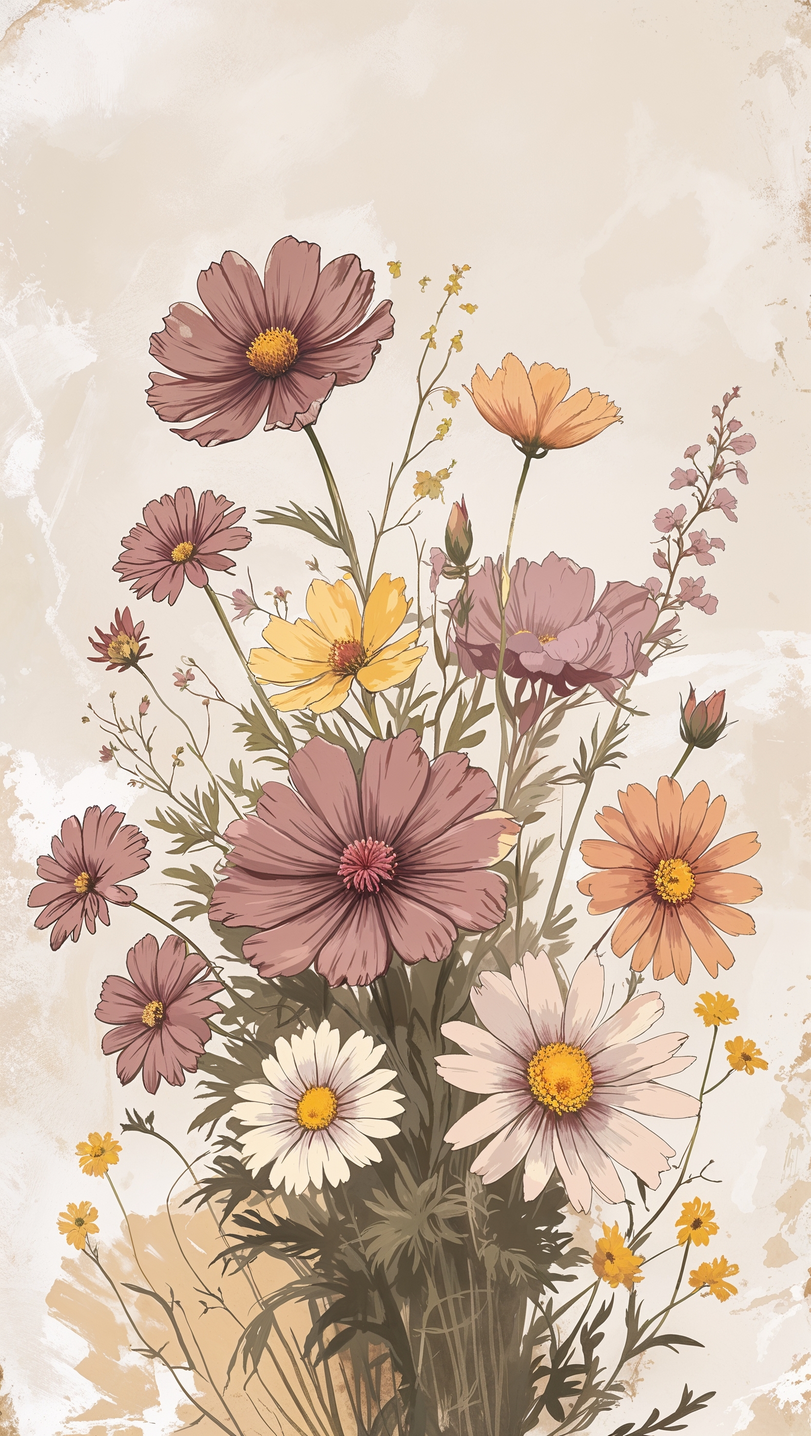 1664x2944 Vintage-style wildflowers, classic iPhone wallpaper