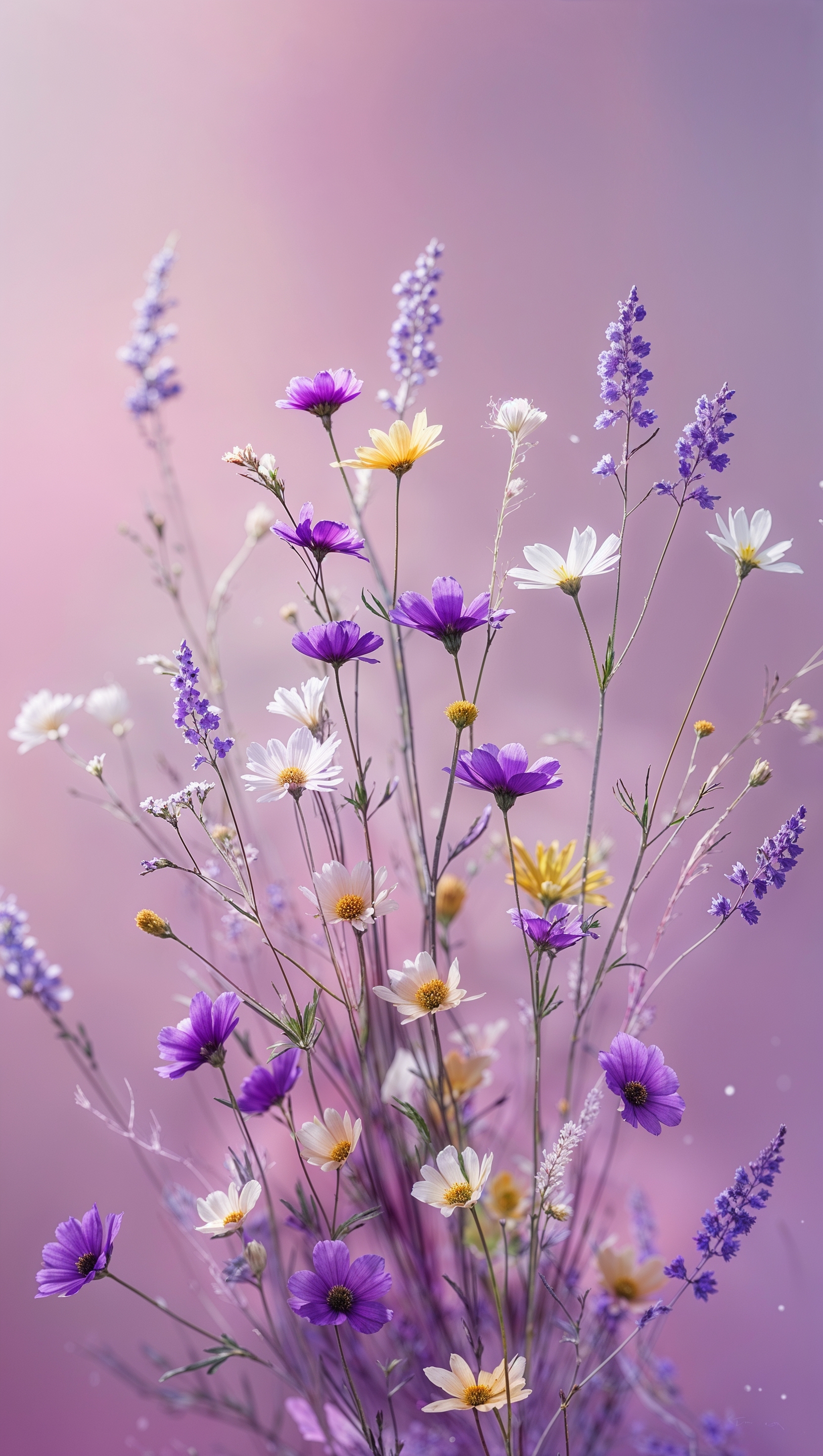 1664x2944 Wildflowers in morning mist, perfect for iPhone wallpaper