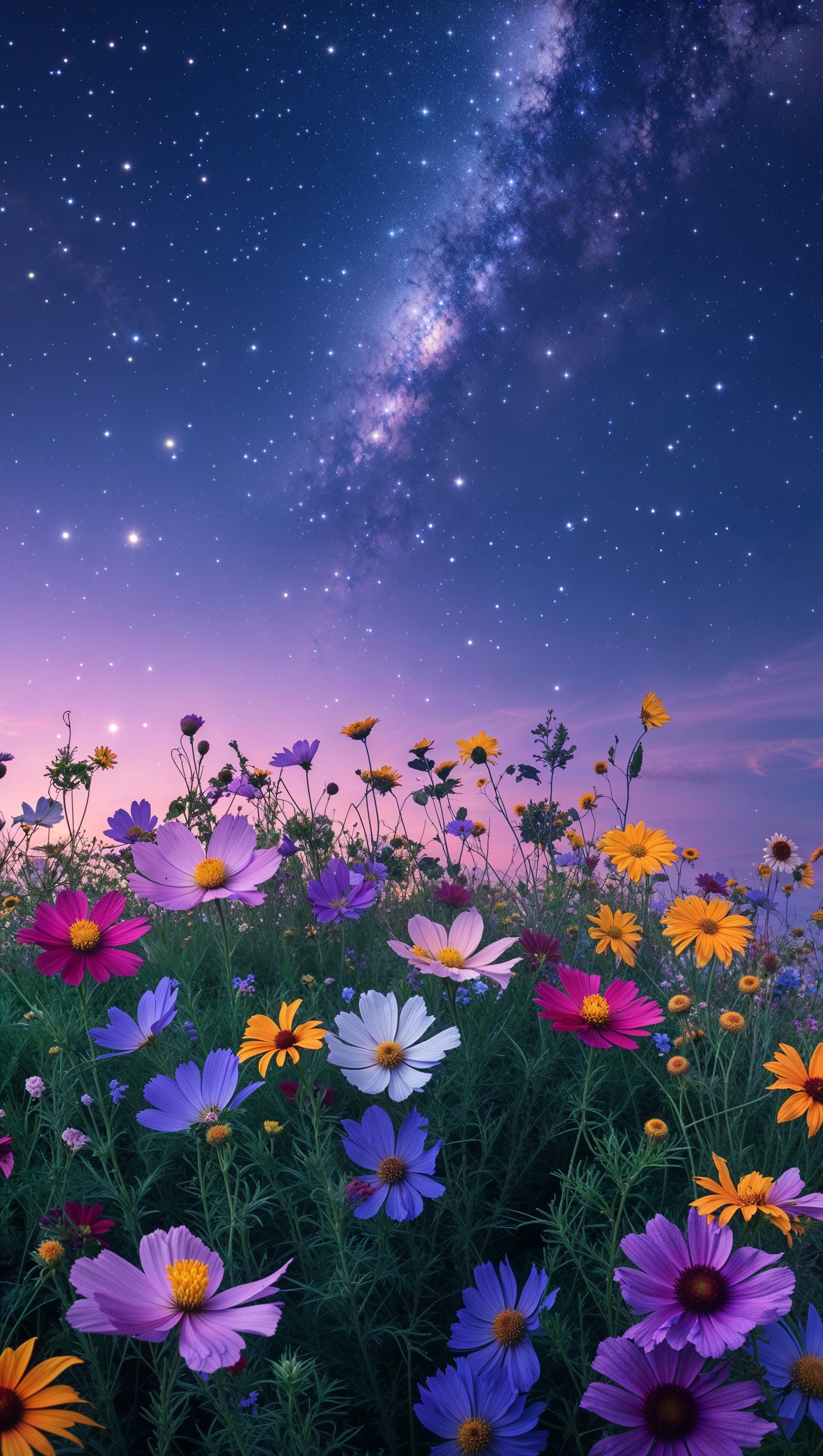 1664x2944 Wildflowers under a starry sky, iPhone wallpaper