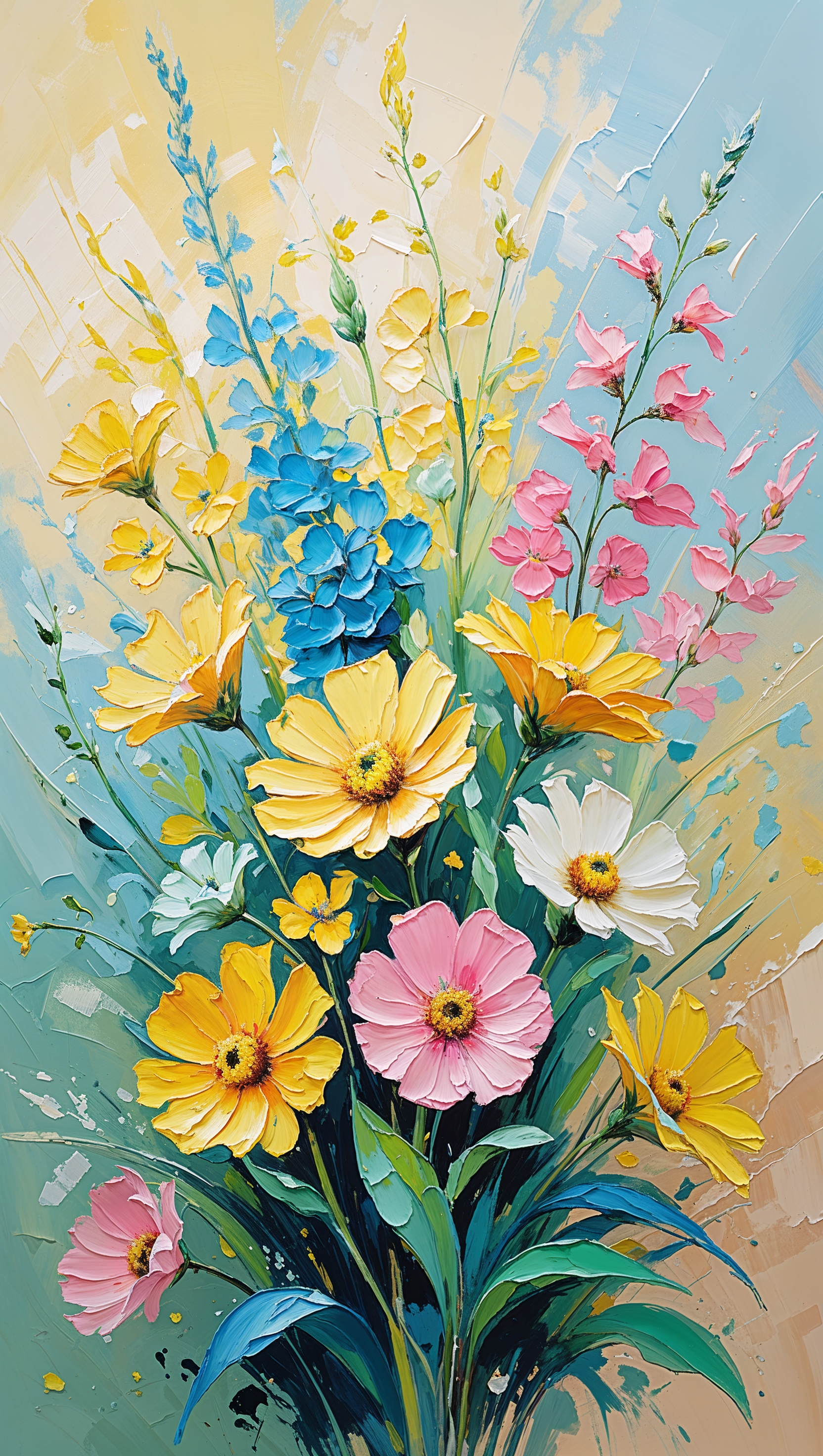 1664x2944 Oil painting style wildflowers, iPhone wallpaper