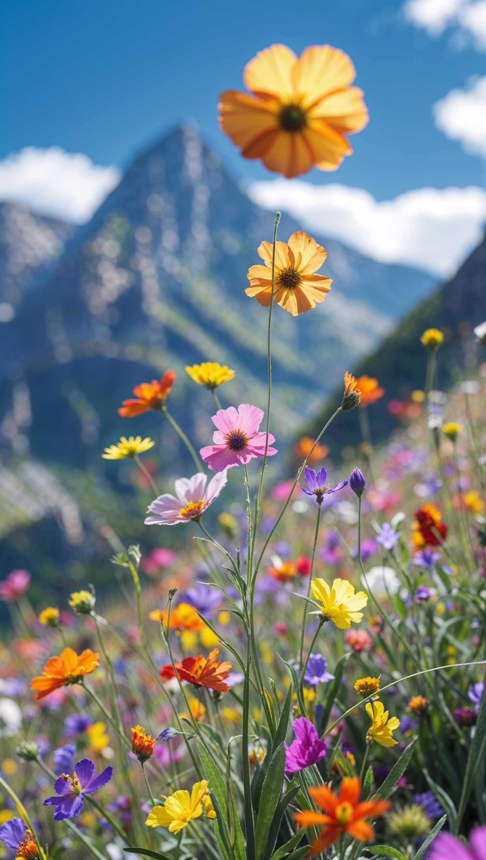 1664x2944 Wildflowers with mountain background, iPhone wallpaper