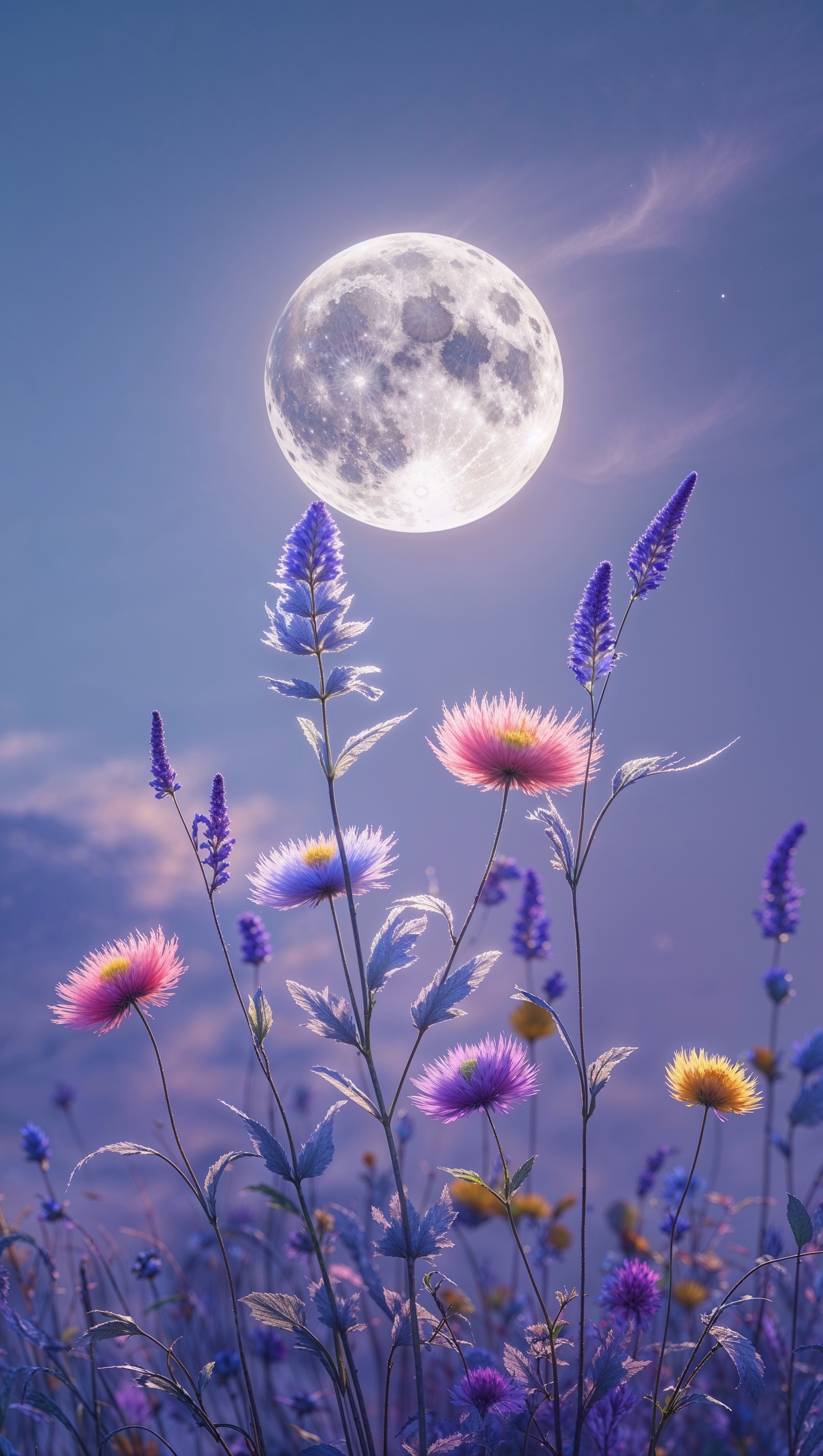 1664x2944 Wildflowers in moonlight, iPhone wallpaper