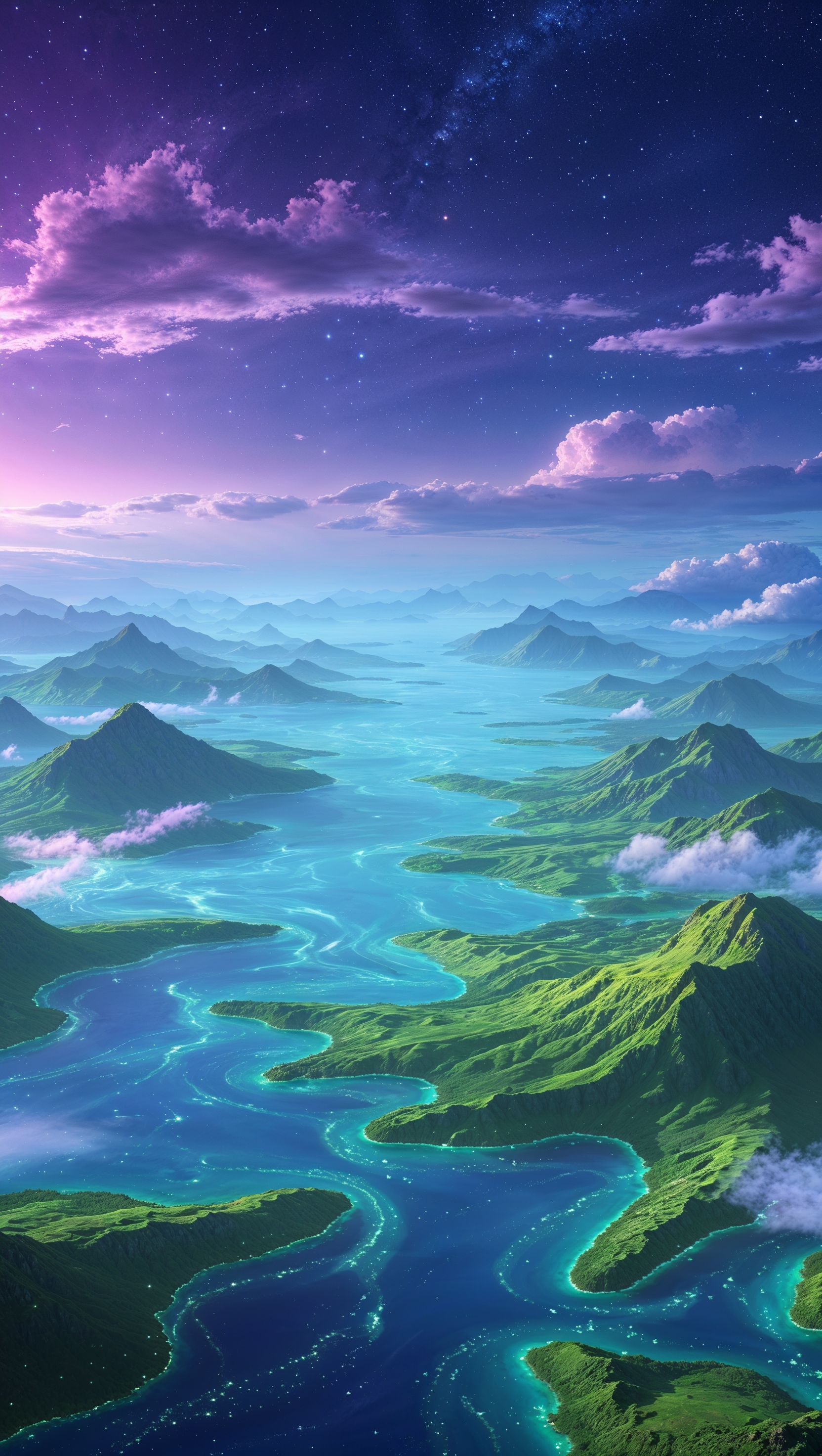 1664x2944 A planet with a volcanic surface and blue-purple sky