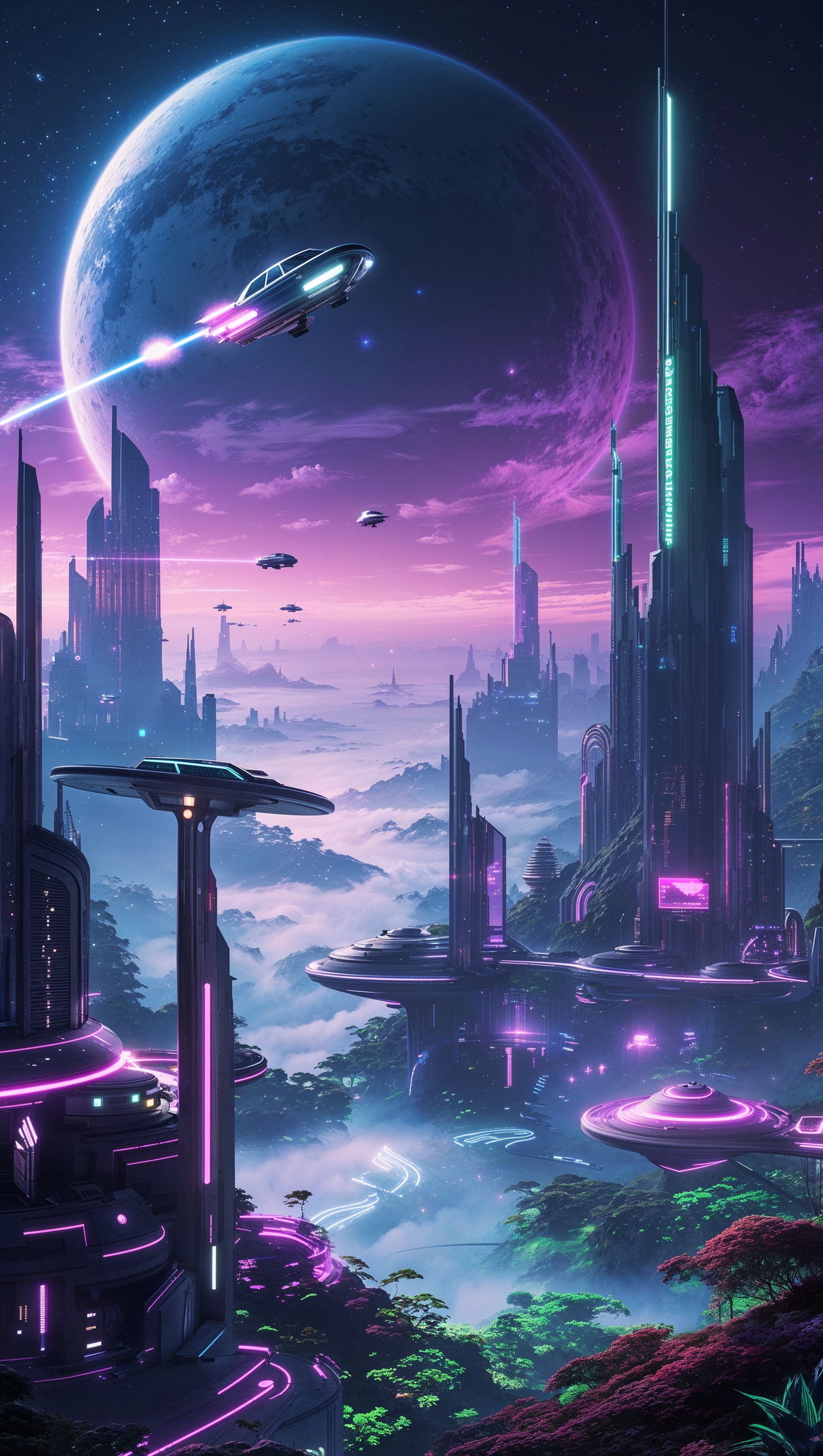 1664x2944 Cyberpunk-style image of a futuristic planet
