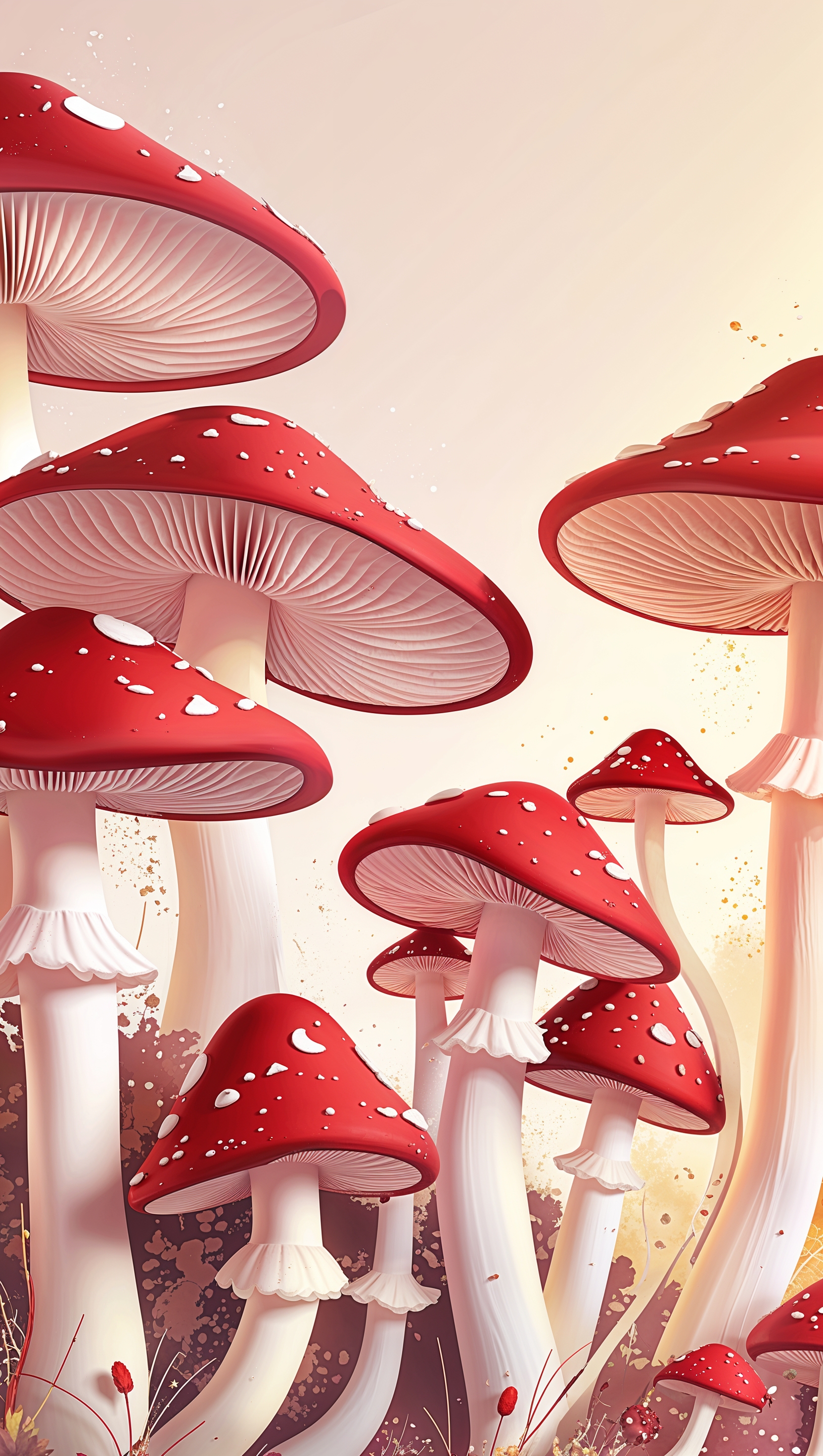 1664x2944 iPhone wallpaper with red and white mushrooms in cartoon style