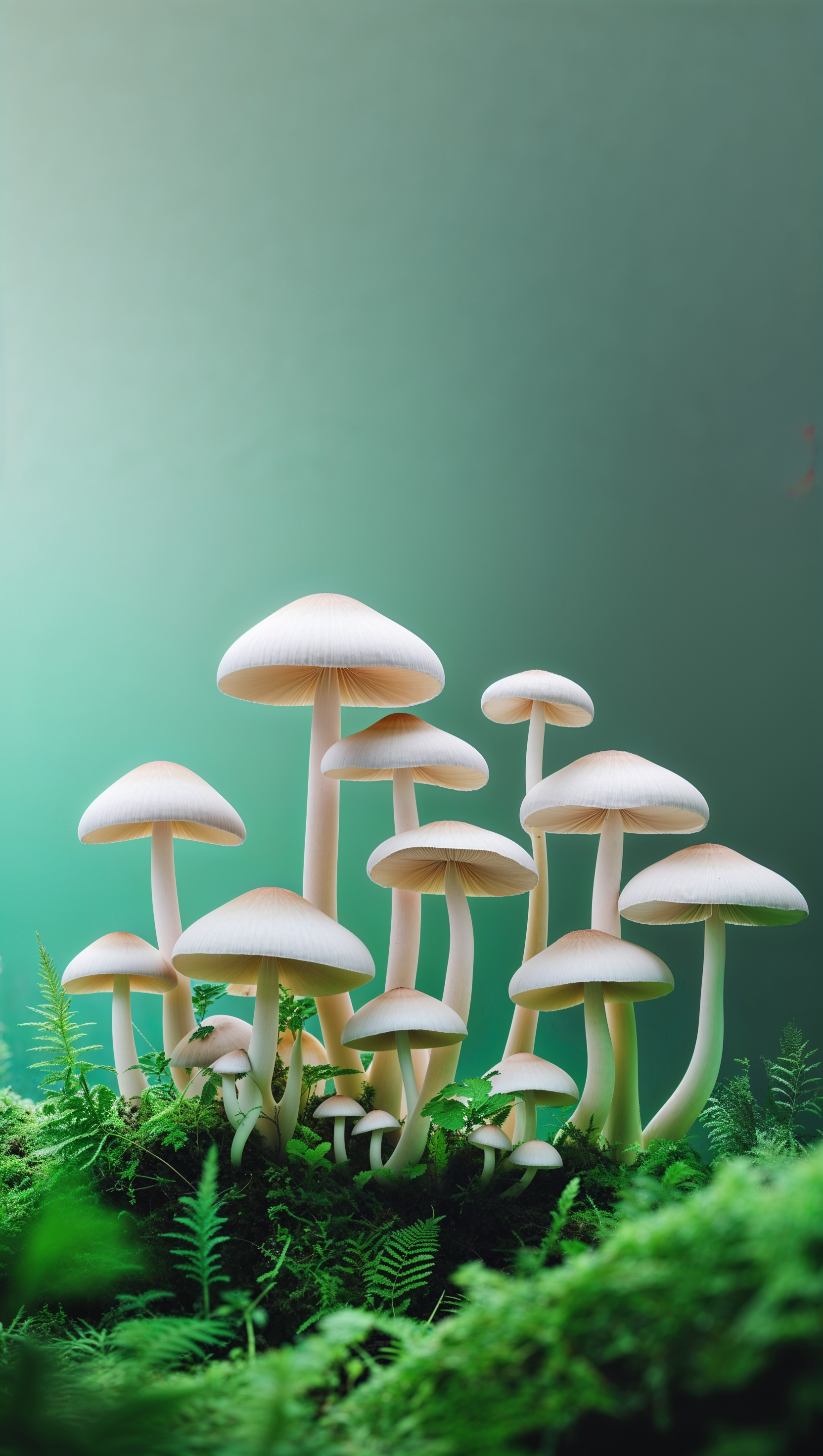 1664x2944 iPhone wallpaper with giant mushrooms in an imaginary space