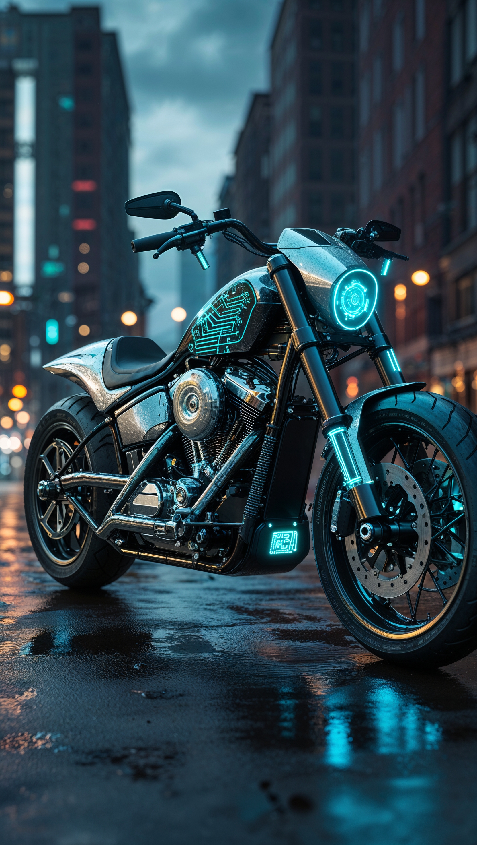 1664x2944 Cyberpunk design of Harley Davidson motorcycle