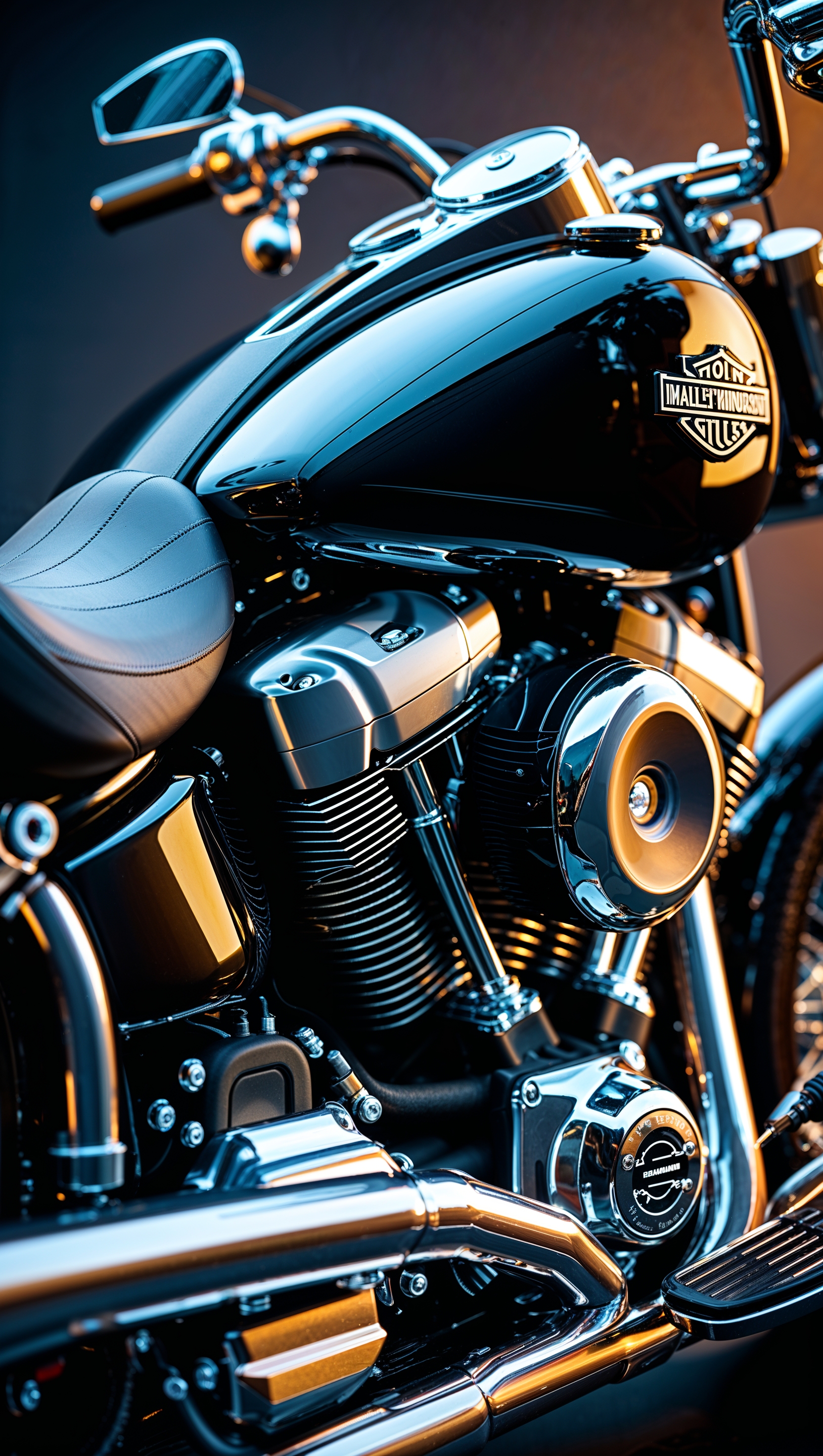 1664x2944 Close-up of Harley bike with shiny chrome details