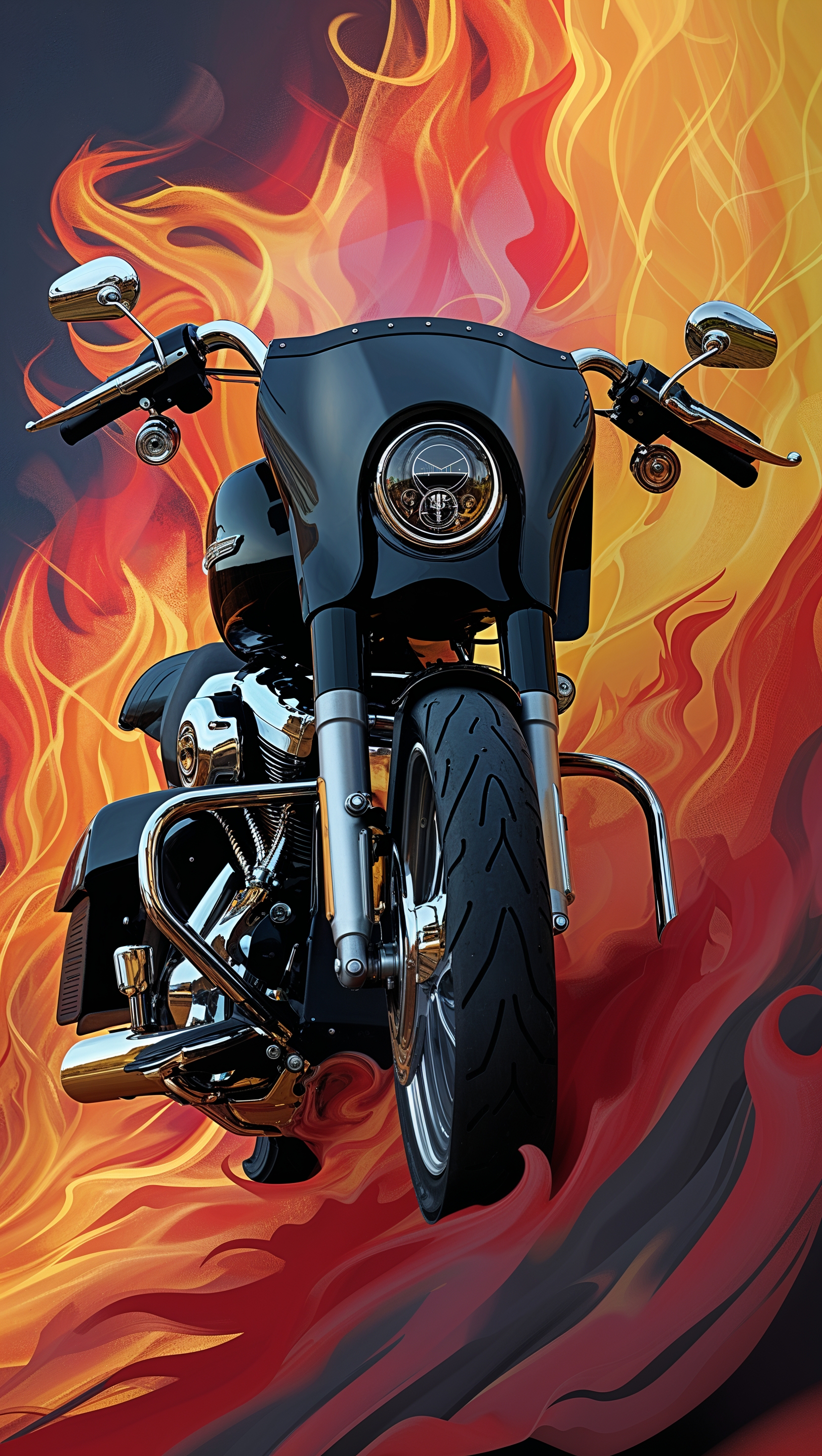 1664x2944 Graphic blend of Harley Davidson with fire and smoke