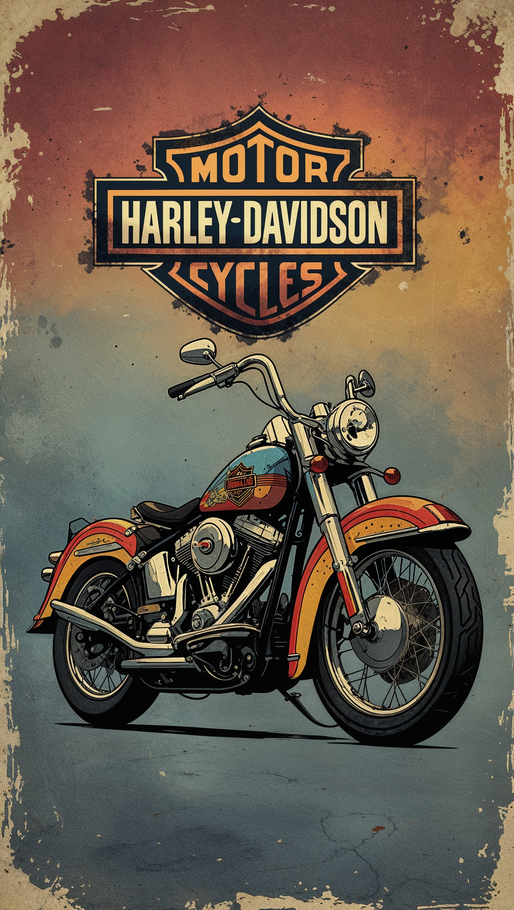 1664x2944 Cartoon-style graphic of Harley Davidson
