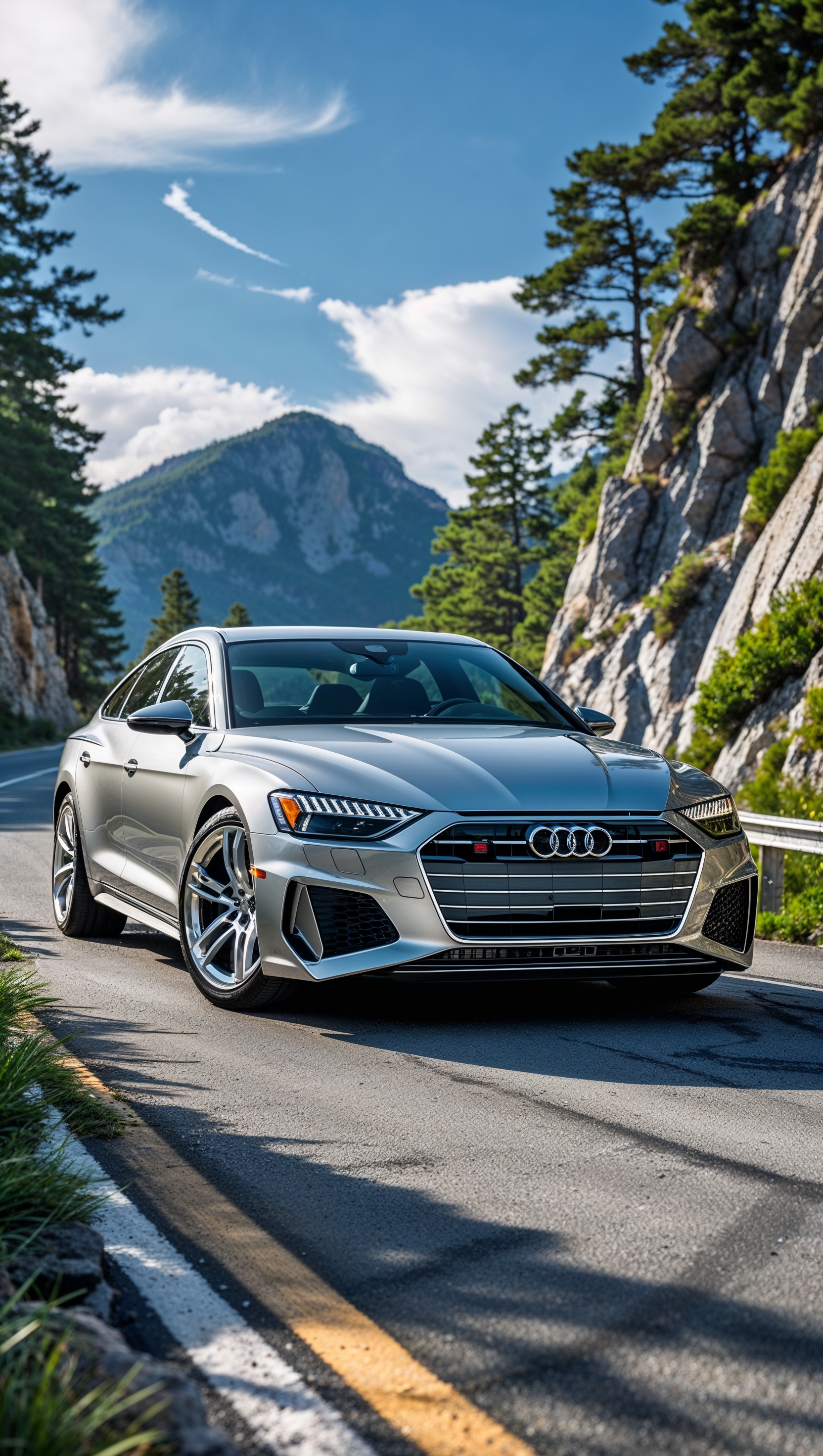 iPhone background with front view of Audi car on mountain road 1664x2944 iPhone background with front view of Audi car on mountain road