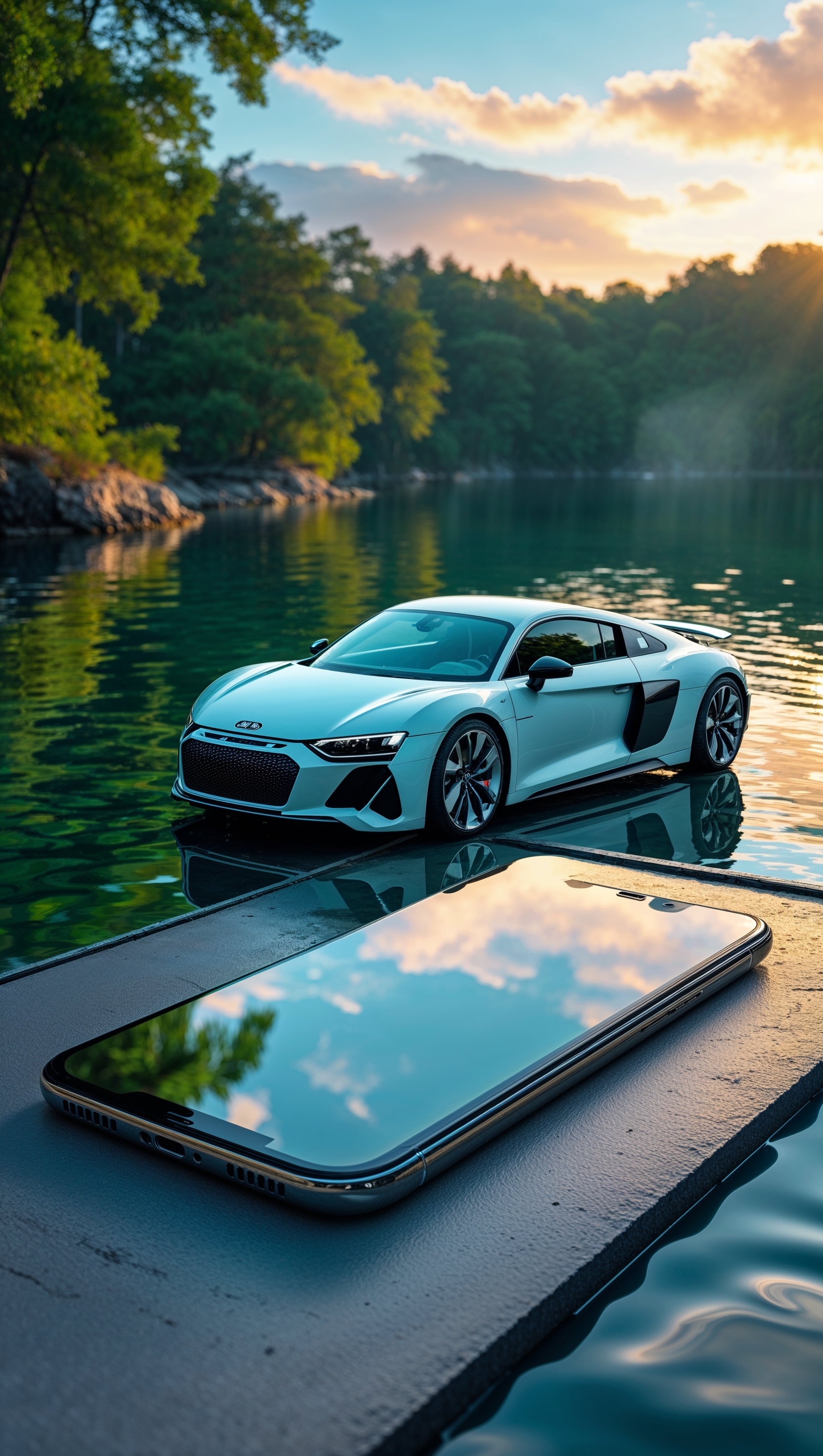 iPhone background with Audi car and light reflections on water 1664x2944 iPhone background with Audi car and light reflections on water
