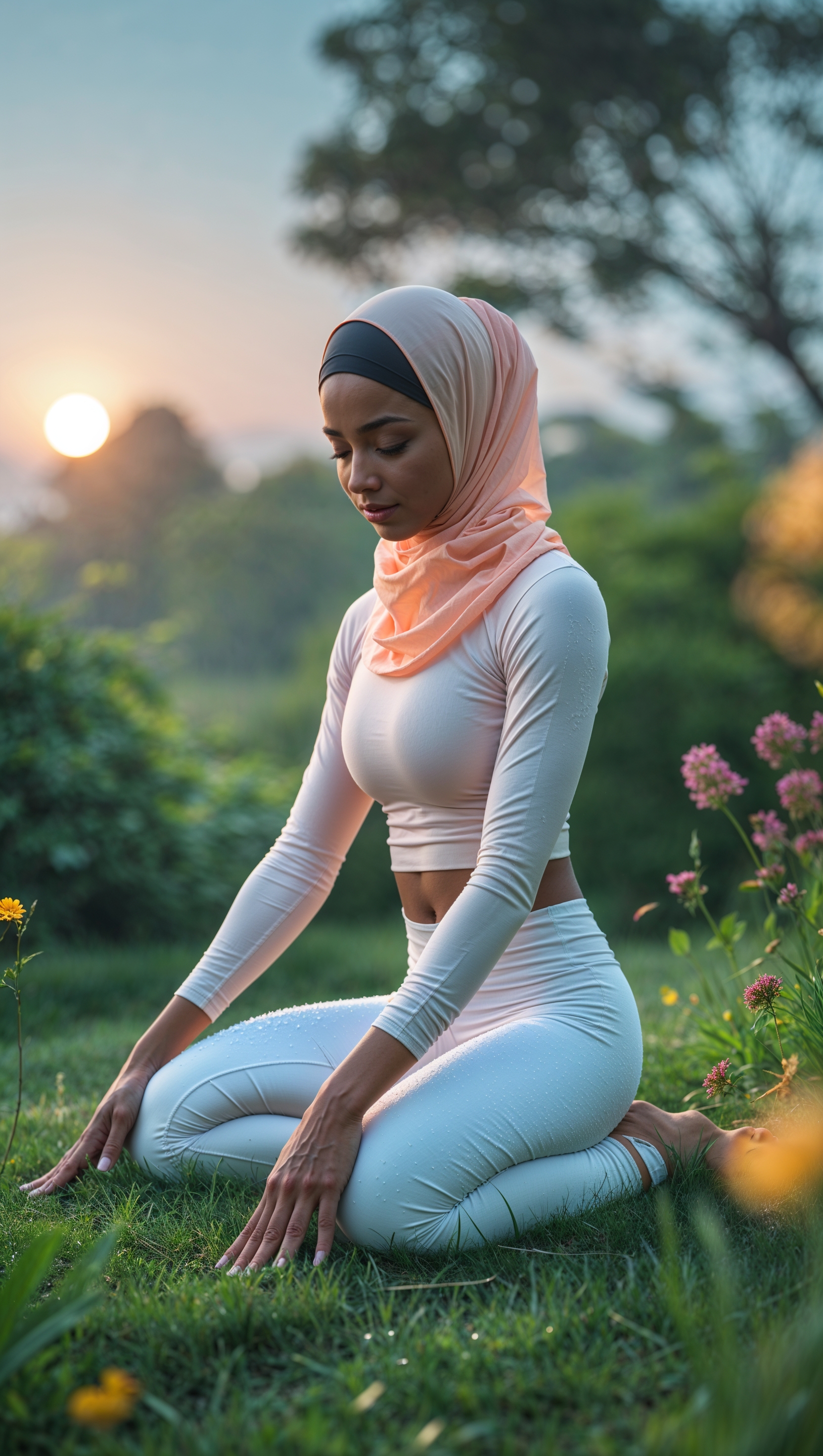 1664x2944 A modest girl in hijab doing yoga in a park, iPhone fitness wallpaper