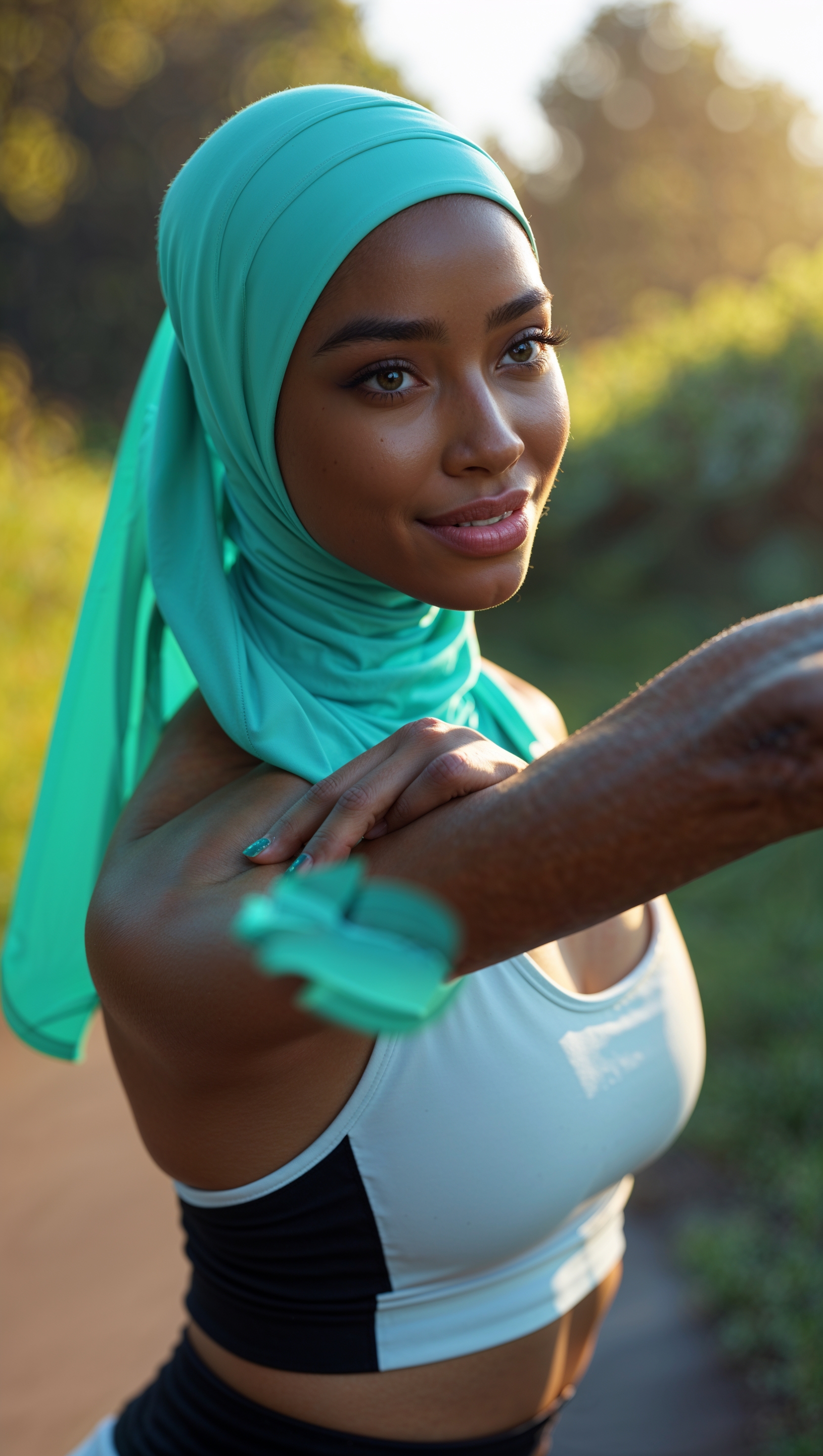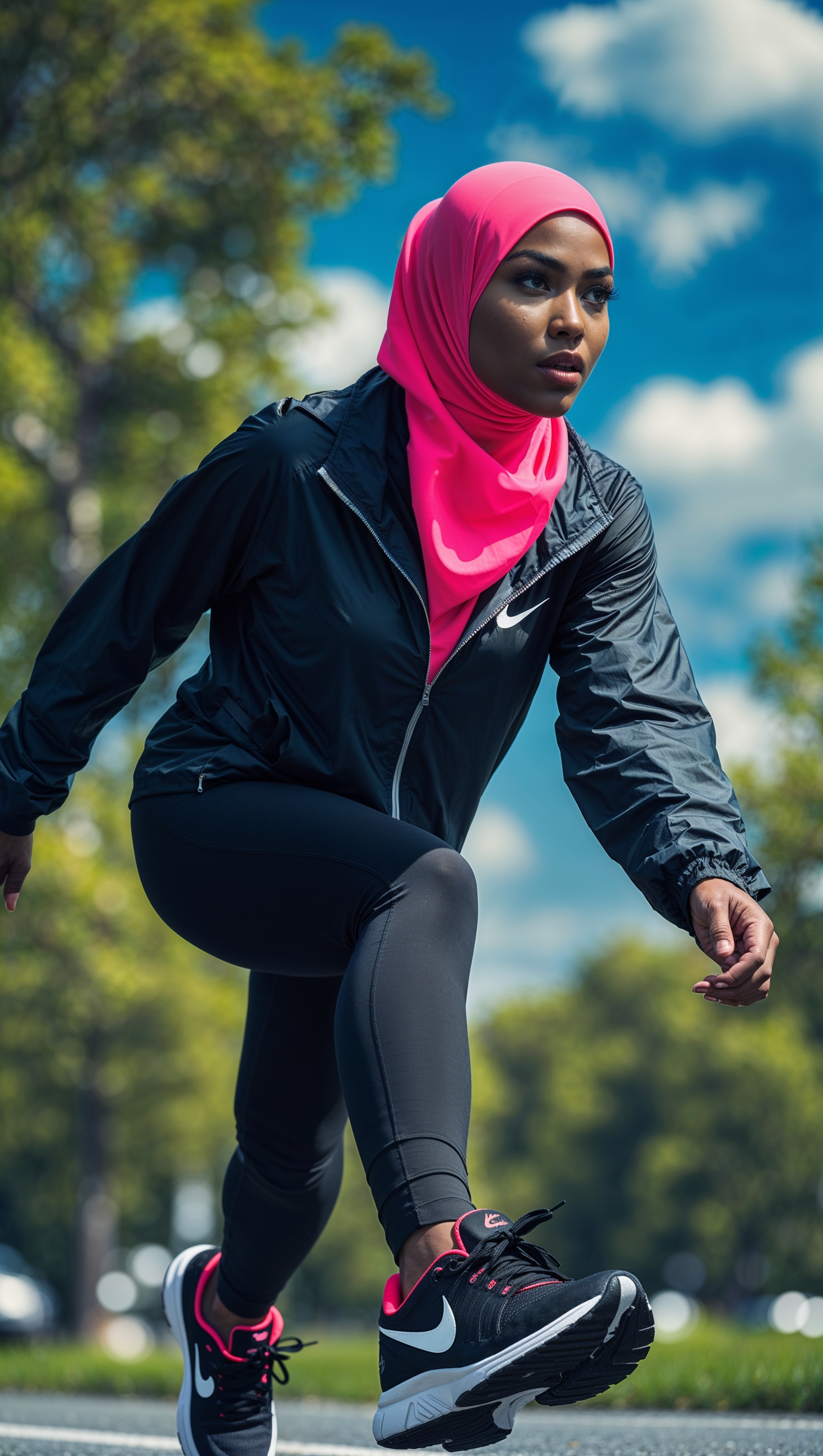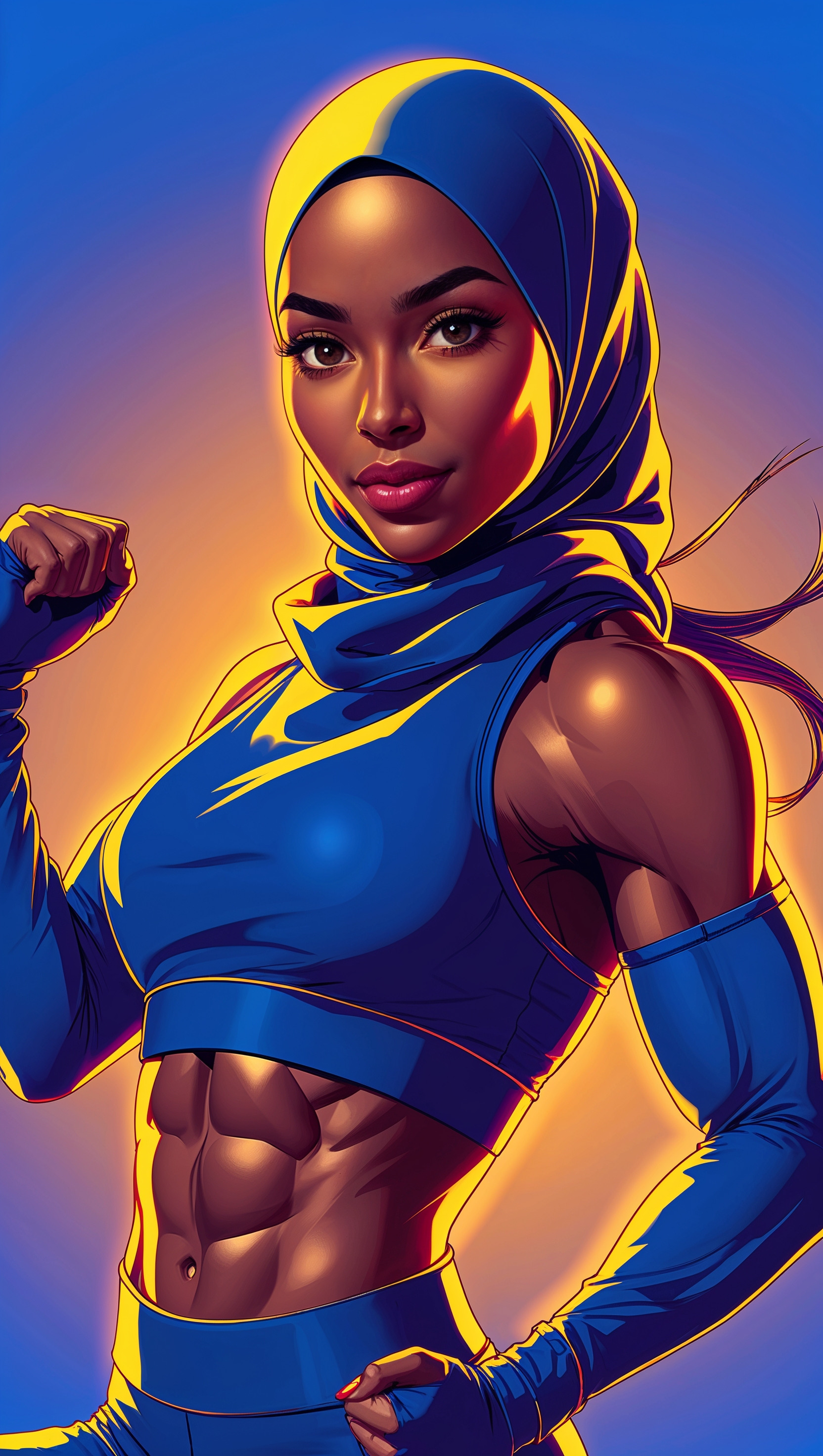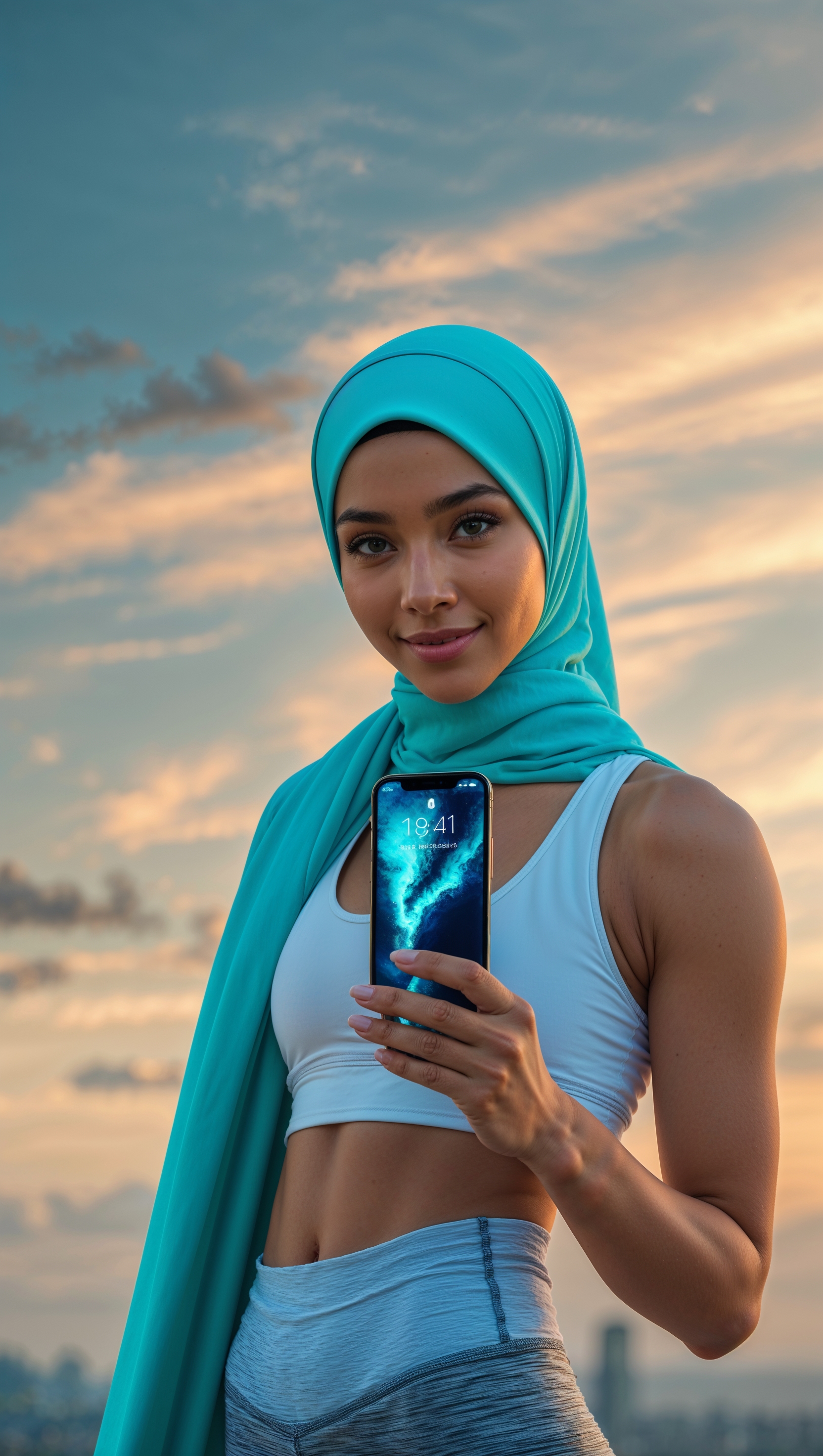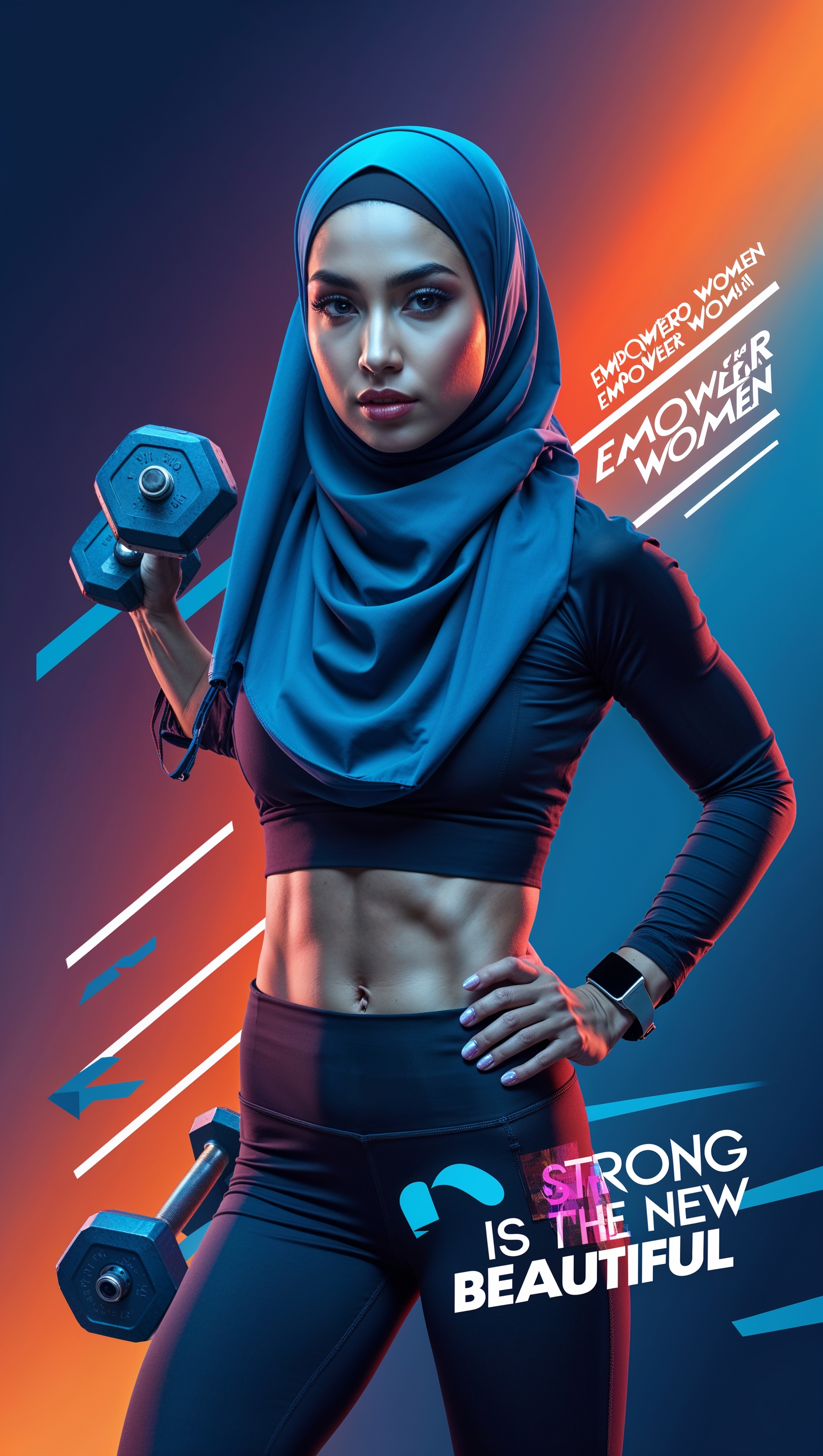 1664x2944 Artistic image of a hijabi fitness girl, iPhone wallpaper style