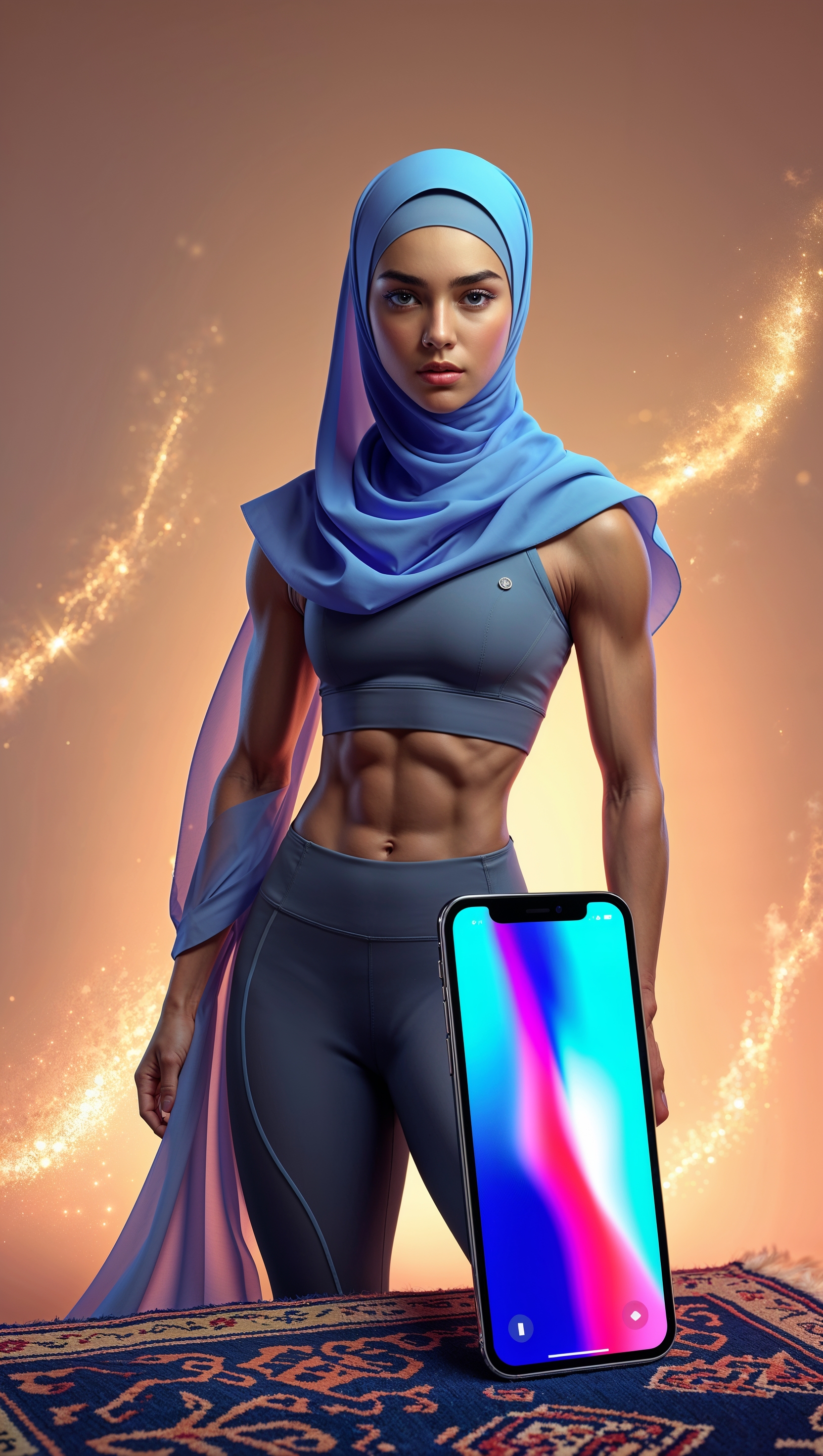 1664x2944 Fantasy-style fitness girl in Islamic outfit, iPhone wallpaper