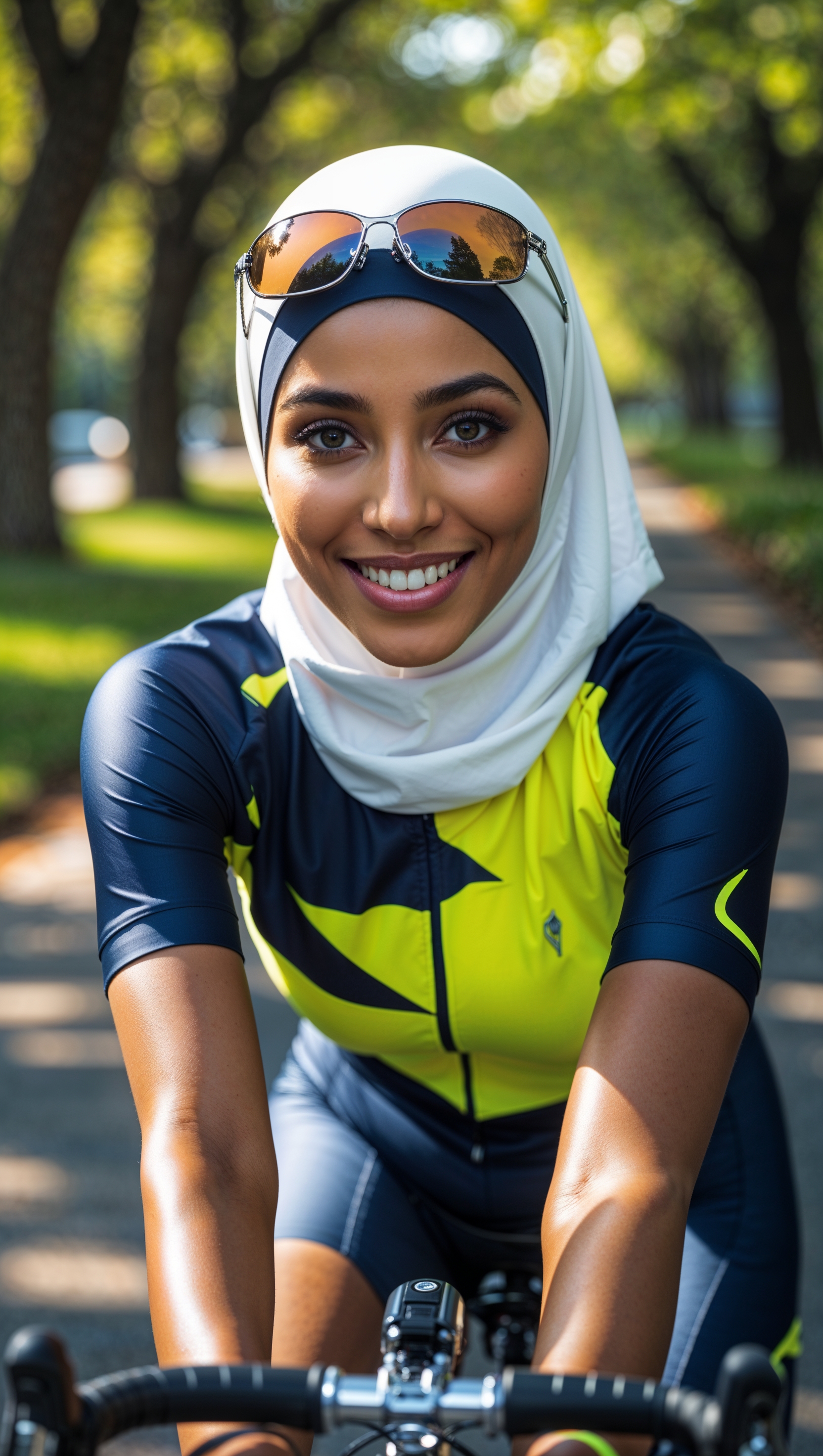 1664x2944 Hijabi woman cycling in a park, iPhone fitness wallpaper