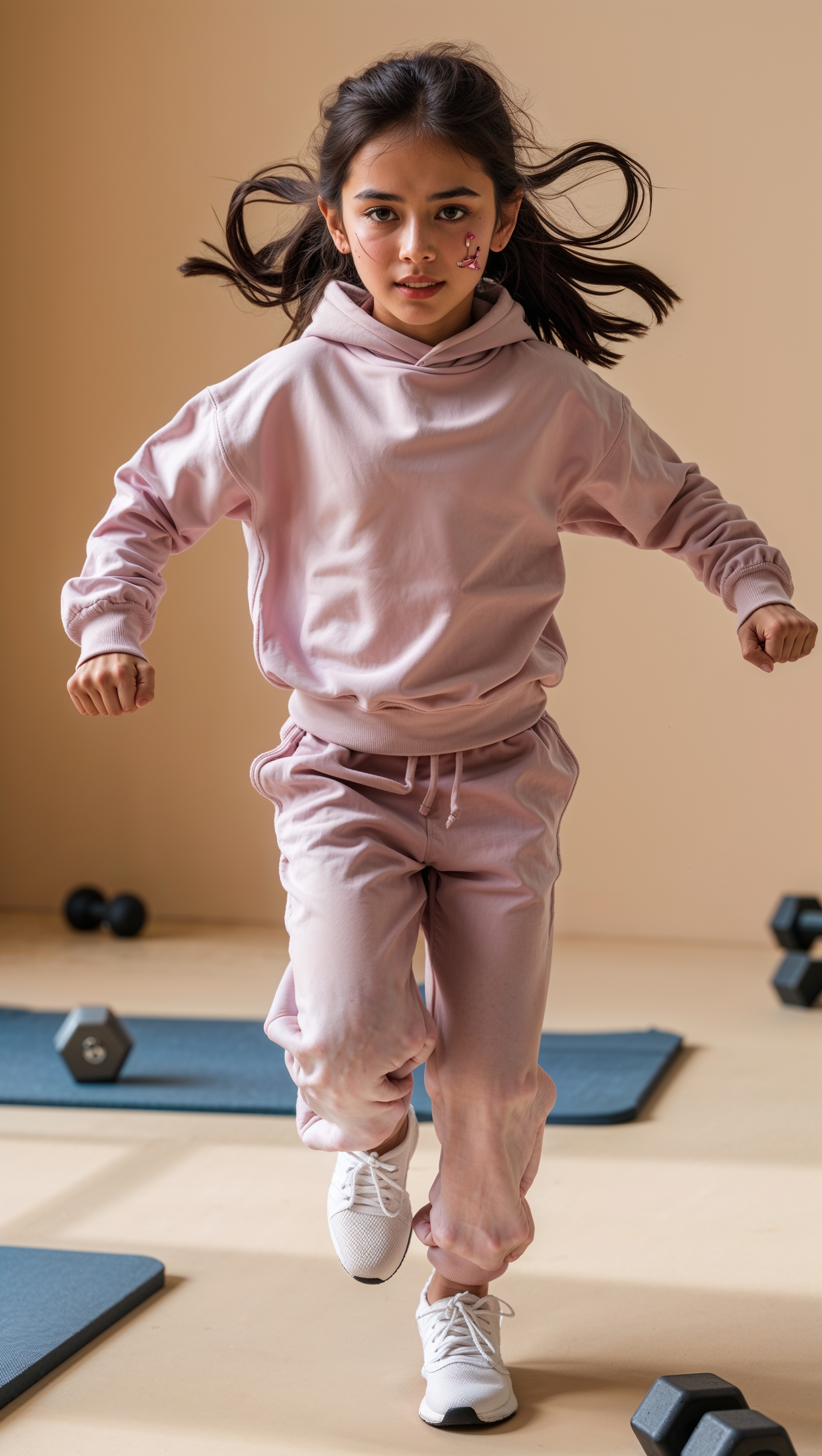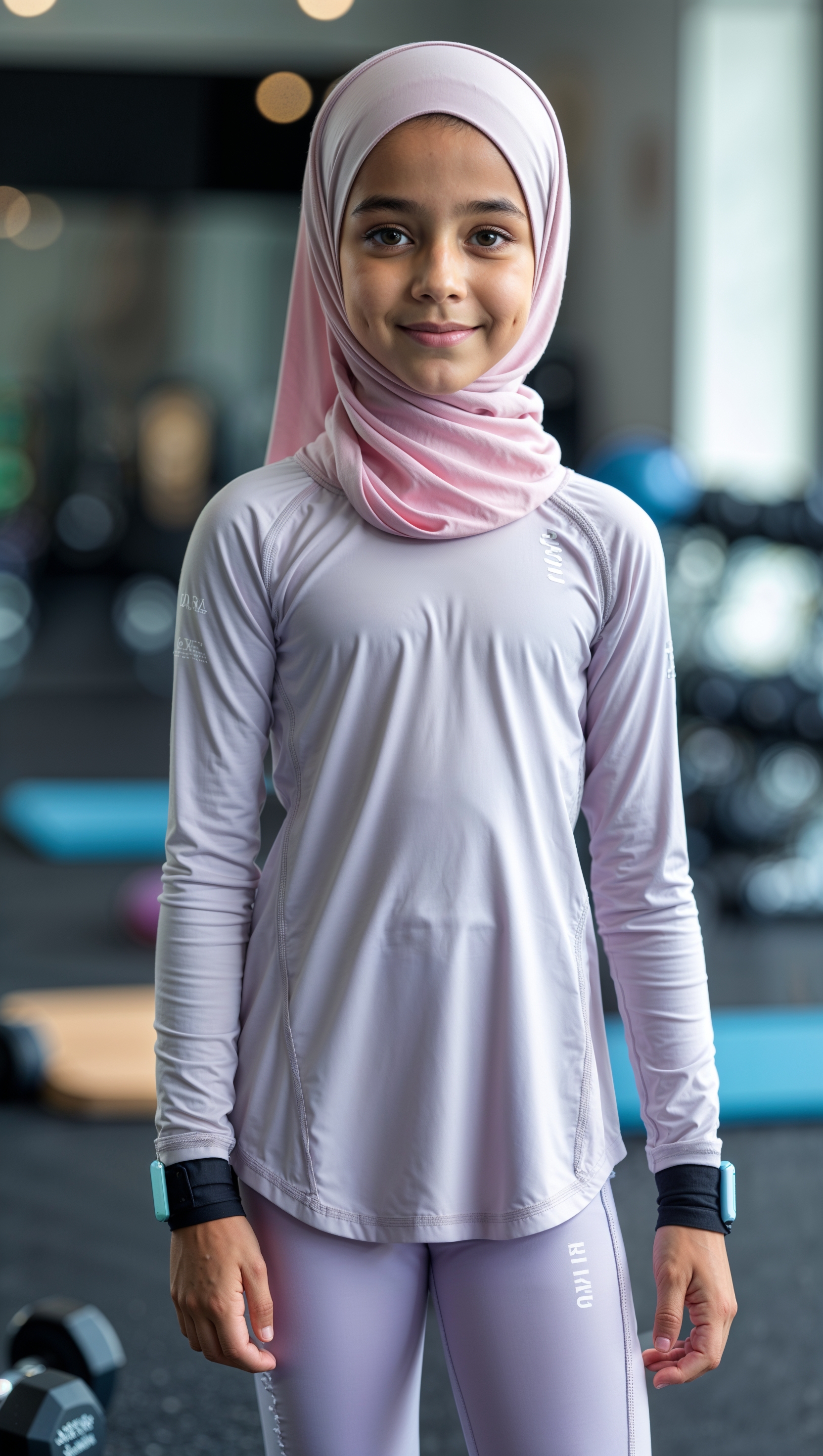 1664x2944 Fitness-themed image of girl in long modest sportswear
