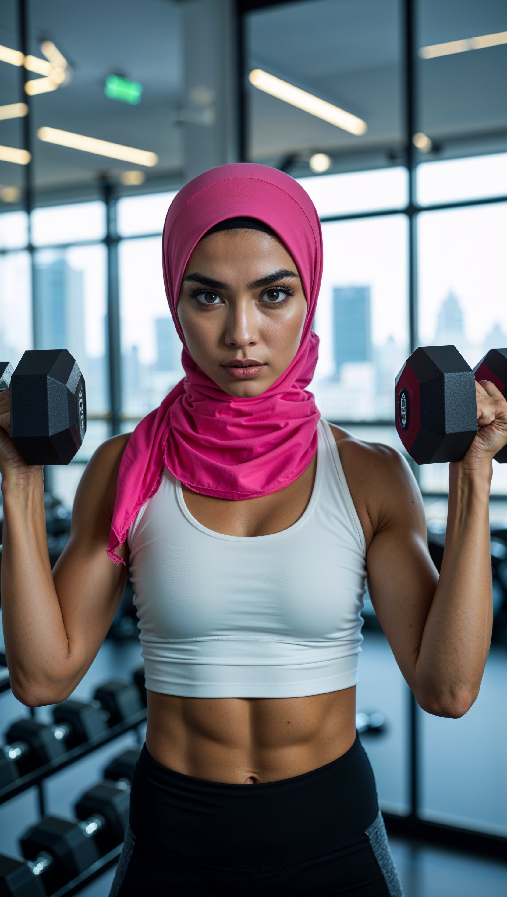 1664x2944 Hijab girl lifting weights, fitness motivation theme
