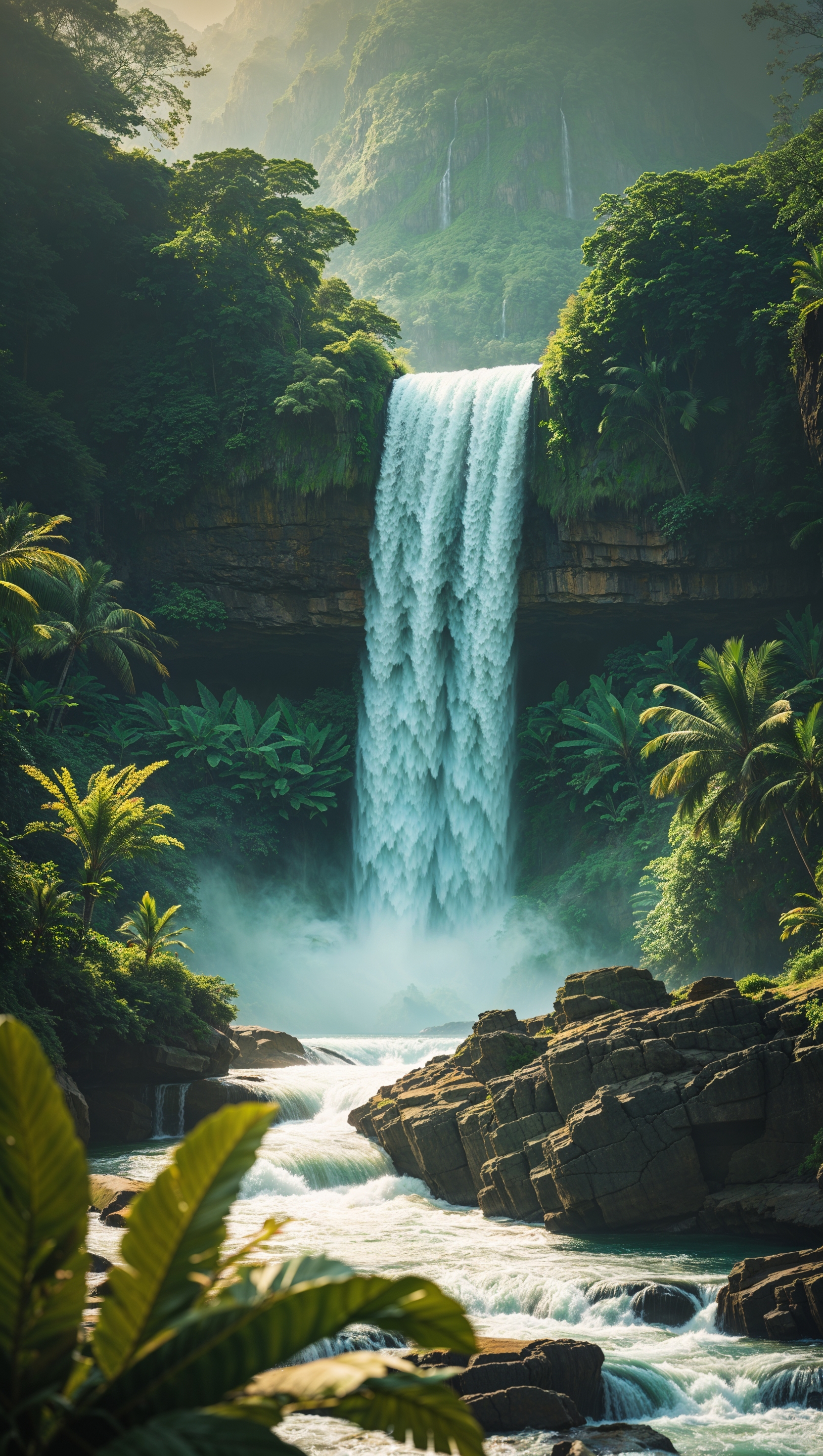 1664x2944 iPhone 11 Pro Max wallpaper showing waterfall in pristine nature
