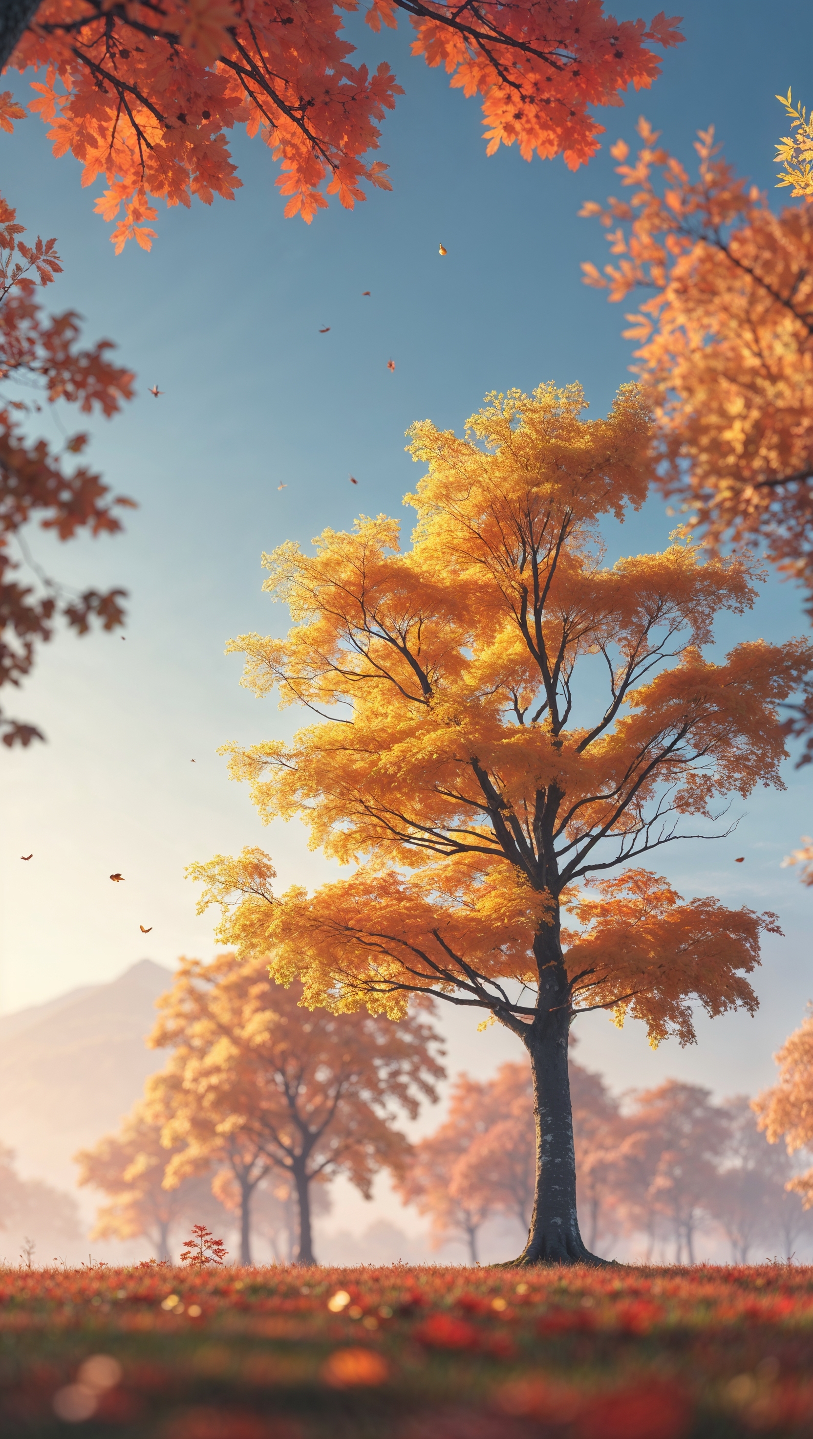 1664x2944 iPhone 11 Pro Max wallpaper showing orange and yellow autumn trees