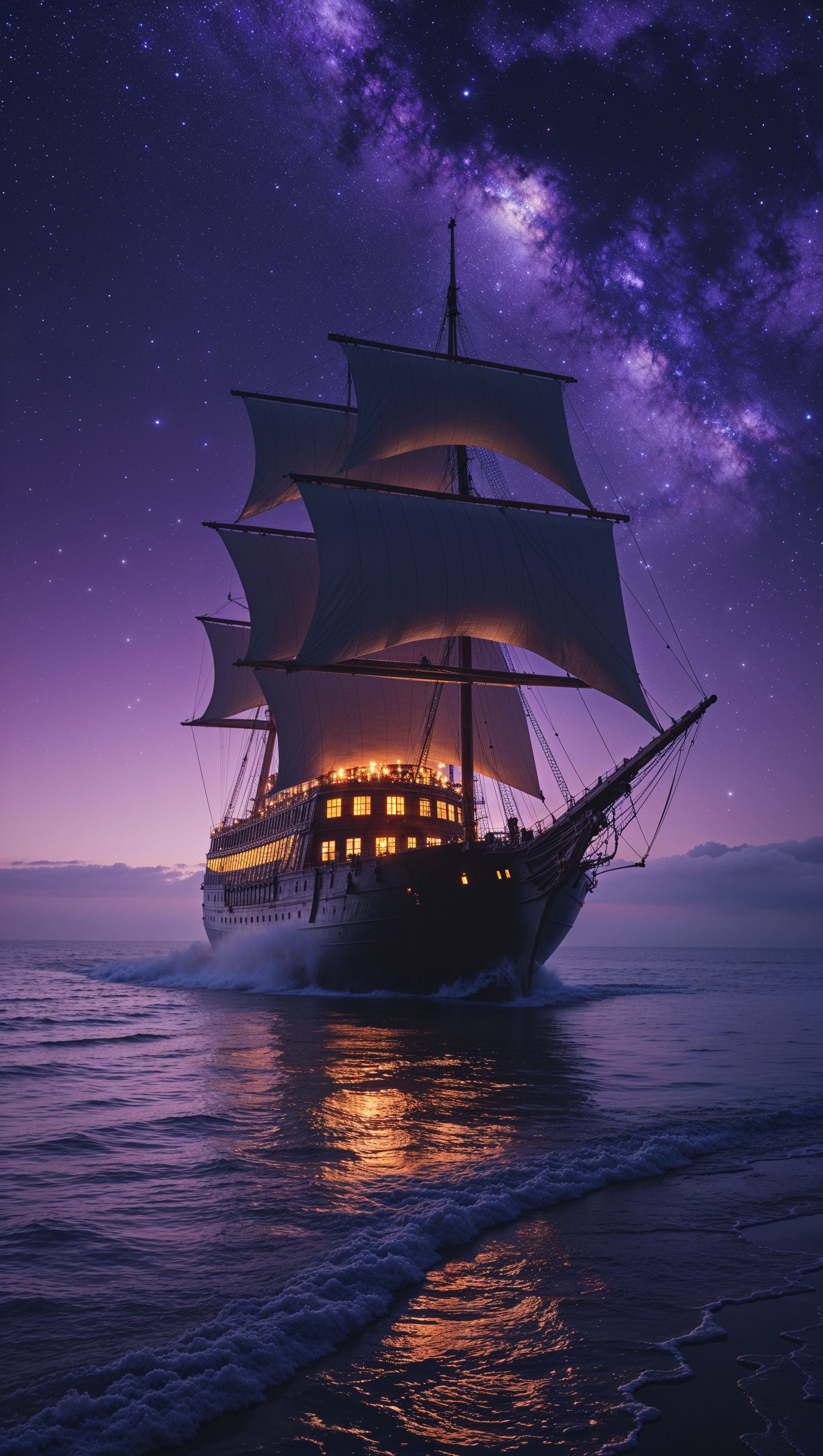1664x2944 iPhone 11 Pro Max wallpaper showing ocean and ship at night