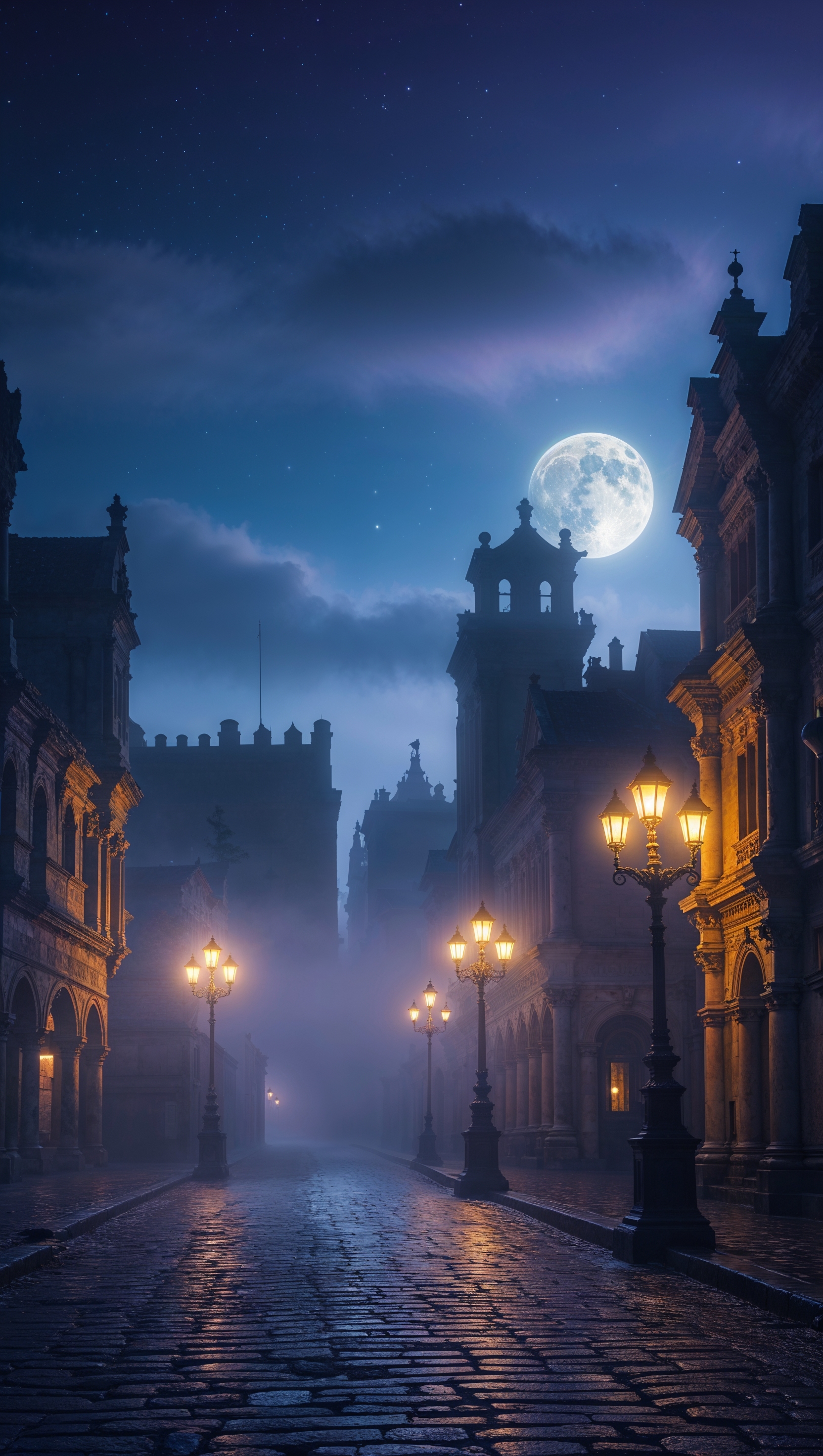1664x2944 iPhone 11 Pro Max wallpaper showing old city in misty night