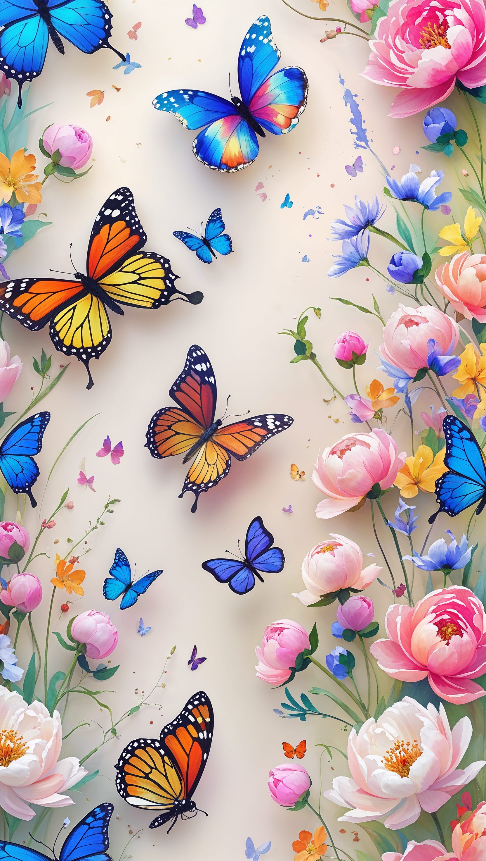 1664x2944 iPhone 11 Pro Max wallpaper showing butterflies and flowers