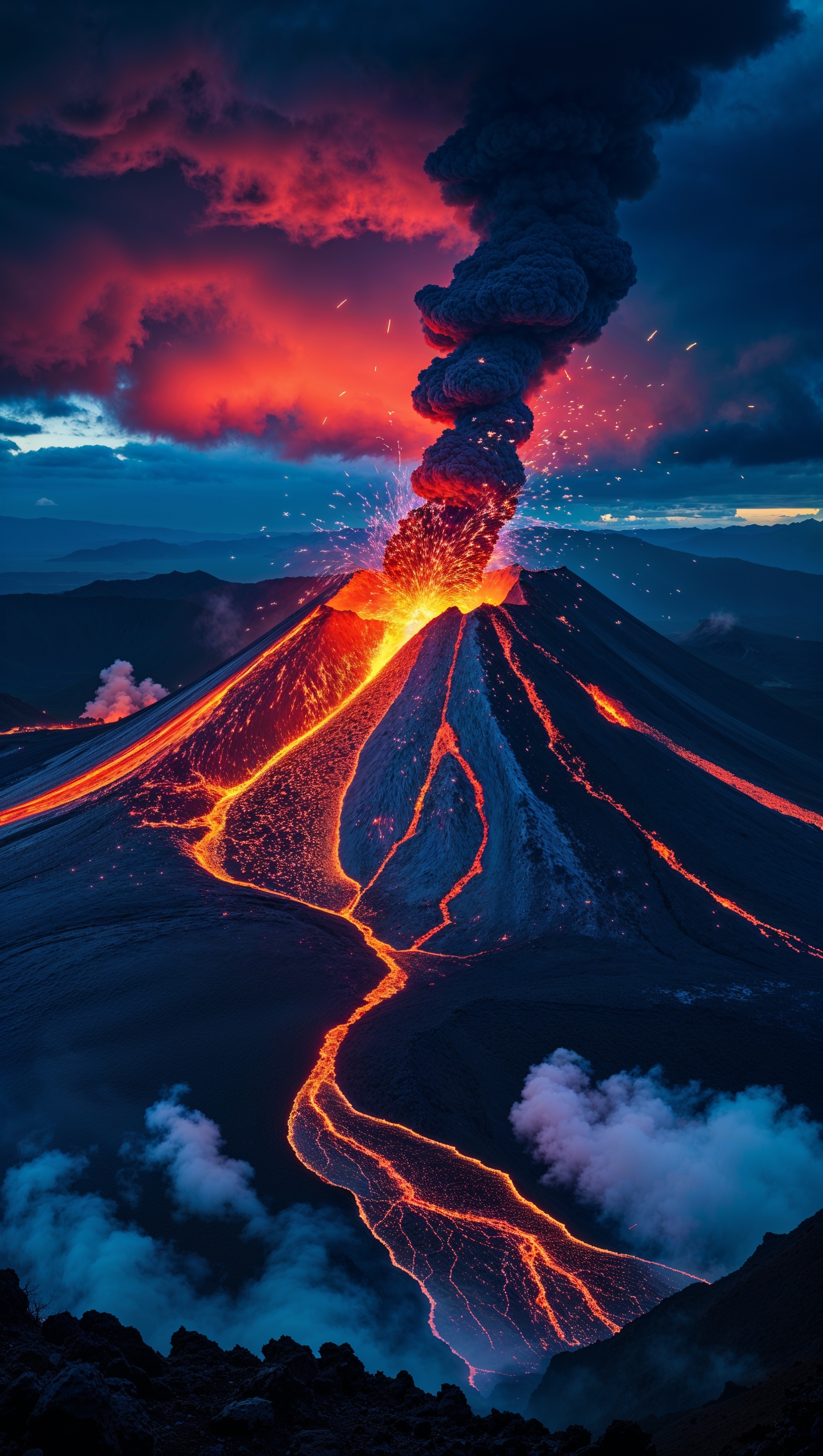 1664x2944 iPhone 11 Pro Max wallpaper showing active volcano eruption