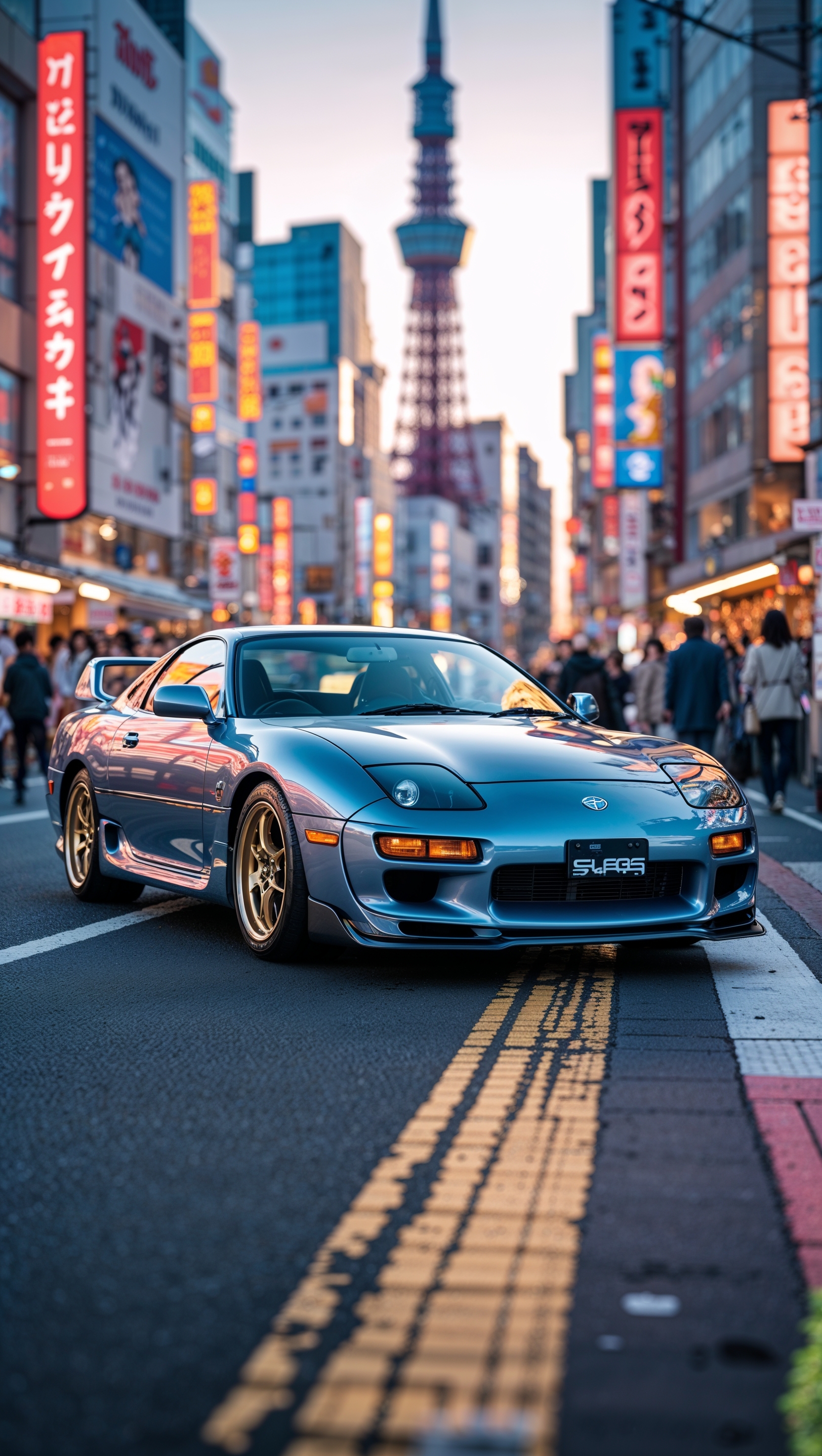 Classic Toyota Supra in Tokyo street with city background 1664x2944 Classic Toyota Supra in Tokyo street with city background