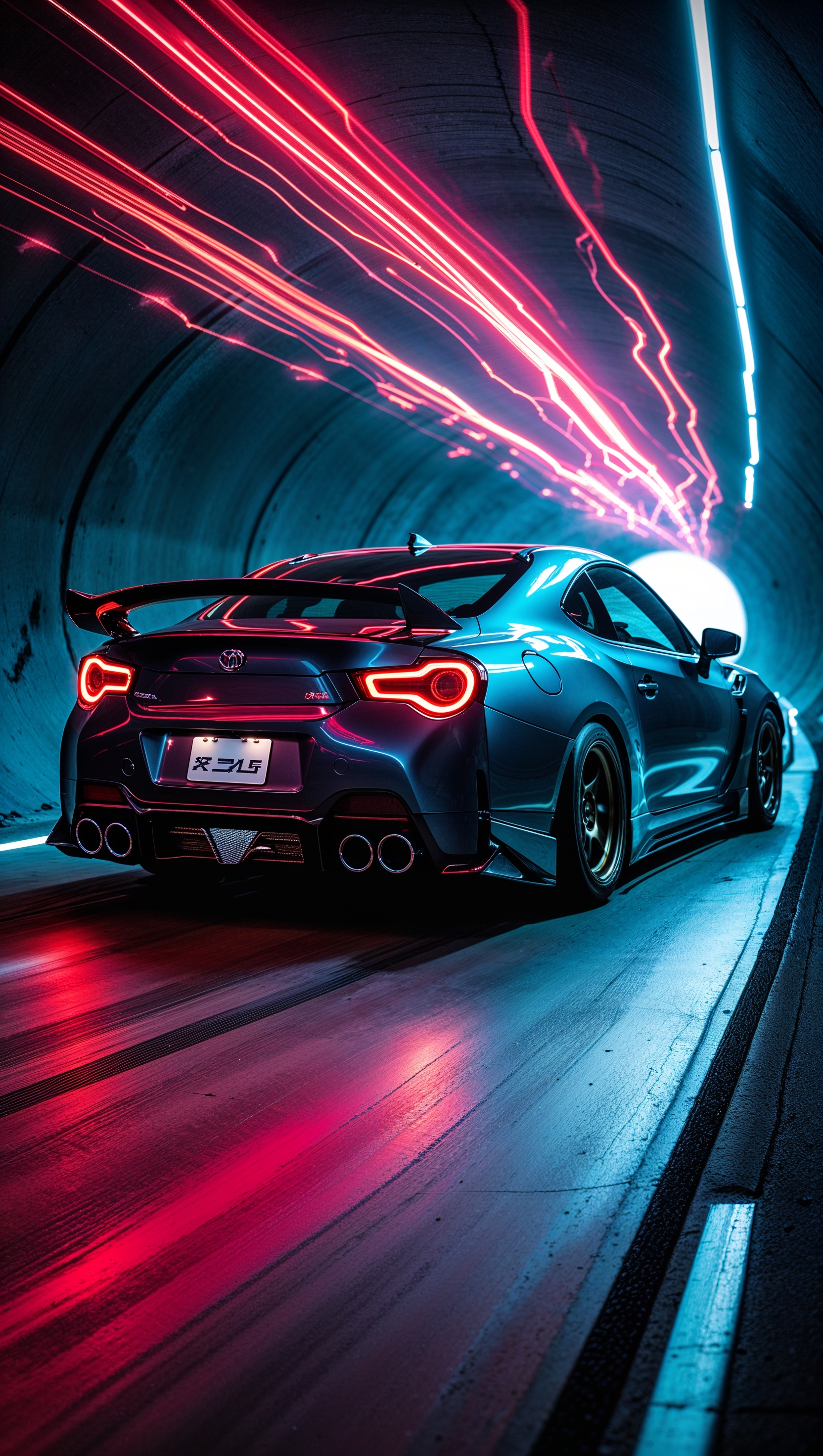 JDM car in tunnel with red and blue light effects 1664x2944 JDM car in tunnel with red and blue light effects