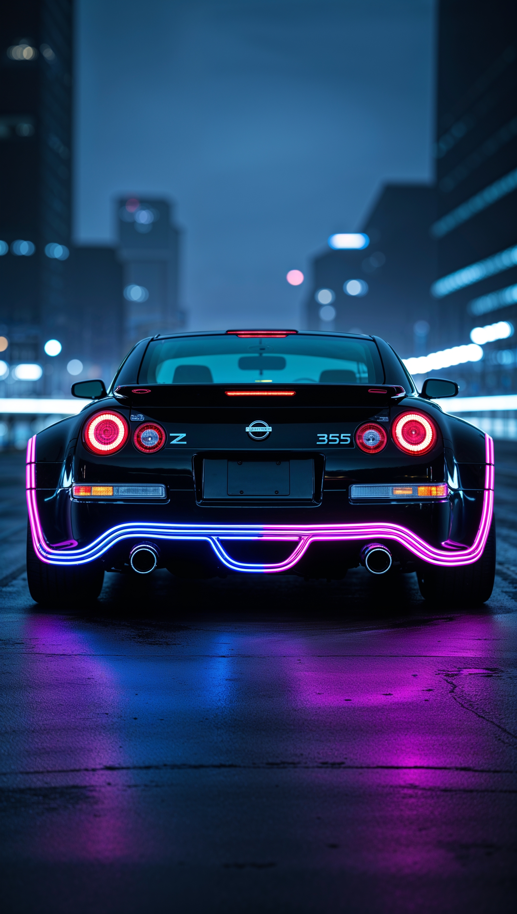 Rear view of a Nissan 350Z with glowing neon lights 1664x2944 Rear view of a Nissan 350Z with glowing neon lights