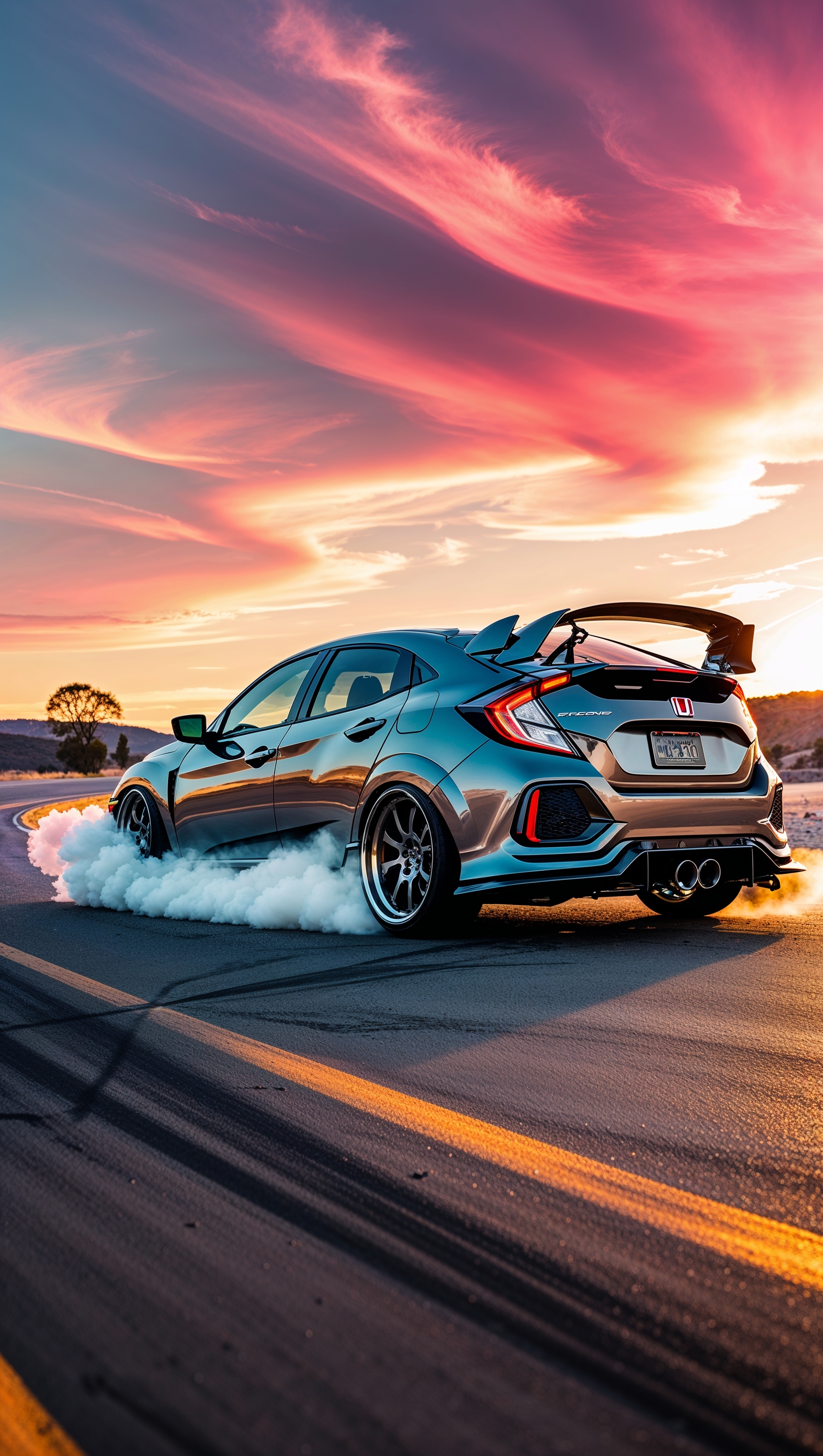Modified Honda Civic with tire smoke and sunset lighting 1664x2944 Modified Honda Civic with tire smoke and sunset lighting