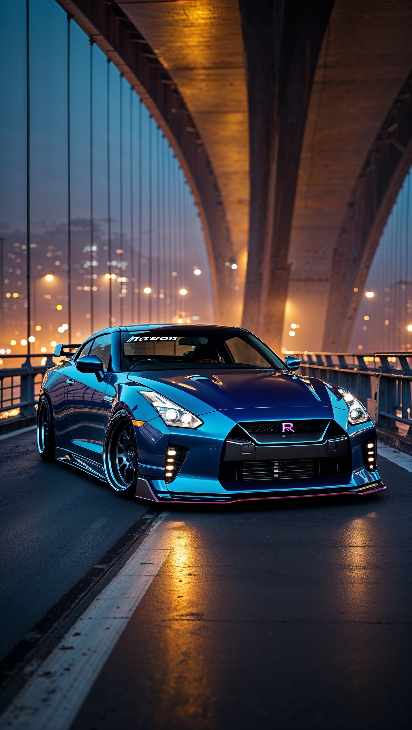 JDM car on a bridge with night lights and light fog 1664x2944 JDM car on a bridge with night lights and light fog