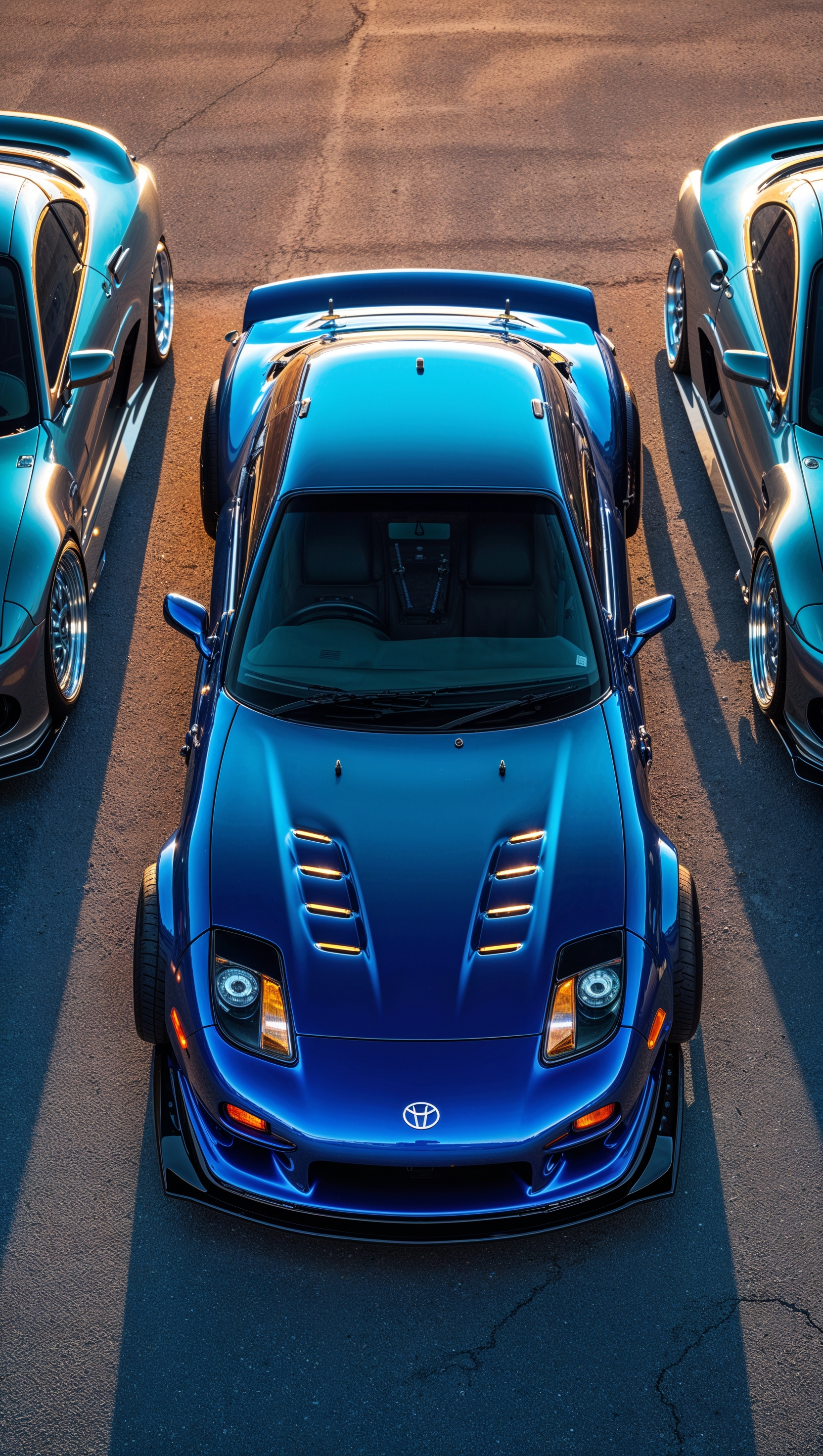 Top view of a JDM car parked between two sports cars 1664x2944 Top view of a JDM car parked between two sports cars
